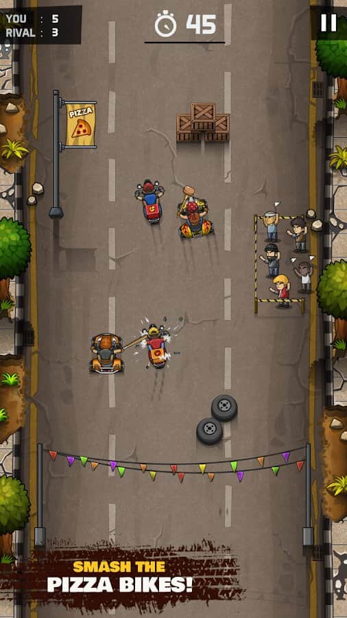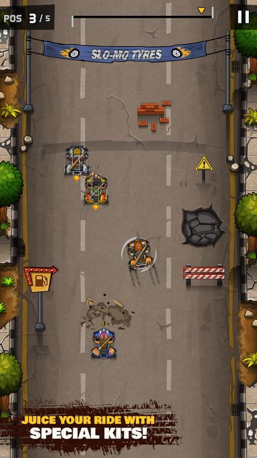 Kaba Yarışçılar - direksiyonun başına geçeceğiniz ve bitiş çizgisine ilk ulaşmaya çalışacağınız dinamik bir aksiyon yarışı. Bu süreçte her türlü silahı, sopaları, bıçakları ve hatta ateşli silahları kullanabilirsiniz. Tabii ki geliştiriciler, farklı karakterler, onlarca araç türü ve daha fazlası ile gelişim sistemini de unutmamışlar. Üstten görünüş, oyun deneyimine daha fazla dinamizm katacak ve aracın üzerinde tam kontrol sağlar.