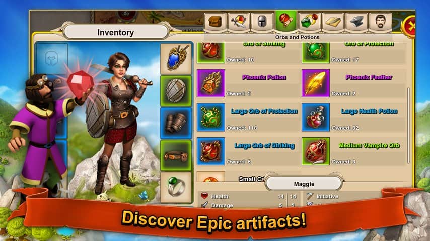 Şimdi, bir kahraman yaratıyoruz ve ona layık savaşçılardan oluşan kendi ordusunu kuruyoruz. Ordunuzu her türlü ihtiyaçla donatan krallığınızı geliştirin - kaleler ve surlar inşa edin, sakinler için evler yapın, gıda ürünleri yetiştirin, atölyeler oluşturun. Gelişin ve mükemmelleşin, eserler bulun ve ordunuzun gücünü artırmak için sihirli nesneleri kullanın.