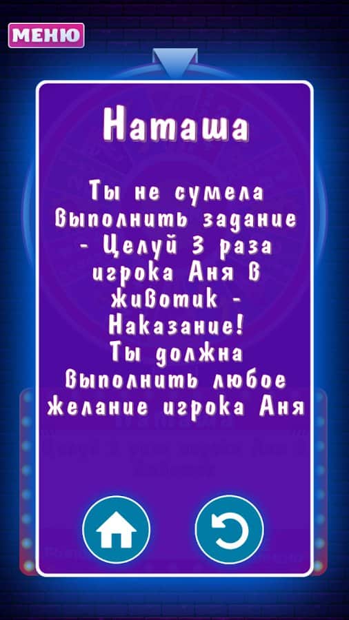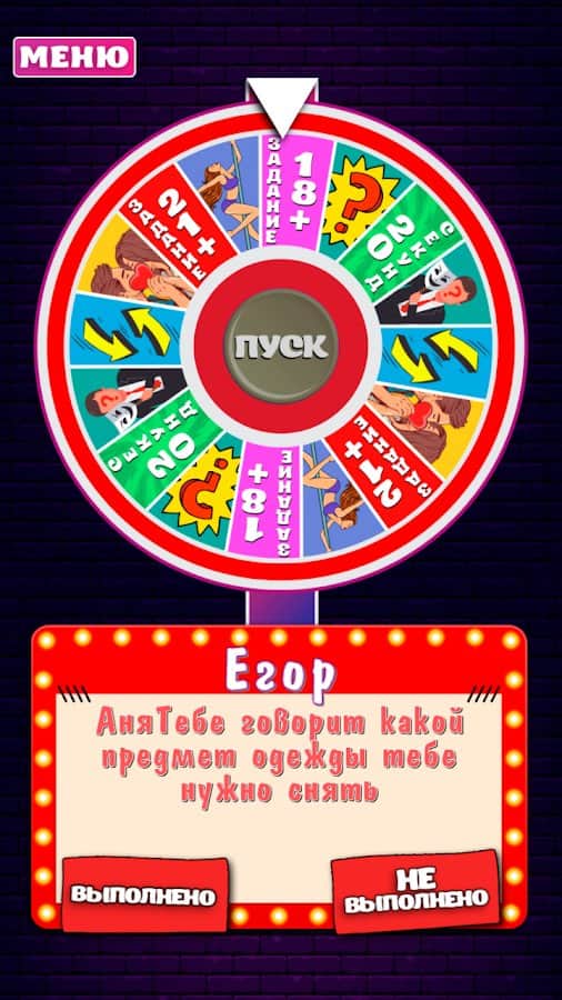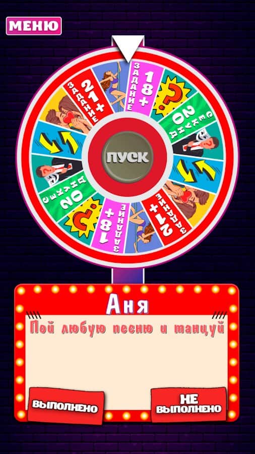 Arkadaşlarınızı veya partnerinizi daha iyi tanımak için İstekler Tekerleği'ni her türlü etkinlikte çevirin! 18 yaş ve üzeri için alaycı sorular ve eğlenceli görevlerle dolu, ahlaka aykırı anların ve düşüncelerin uygun olduğu bir oyun. Katılımcıları ekleyin, sırayla düğmeye basın ve her seferinde nefesinizi tutun, her şey olabilir. Oyun, katılımcıların belirli görevleri yerine getirmediği durumlar için de önlemler içeriyor. Bu gibi durumlarda, genellikle daha provokatif görünen görevler yazılır. Sıkıcı bir partiyi veya basit bir akşamı renklendirin ve ardından onları sonsuza dek hatırlayın!