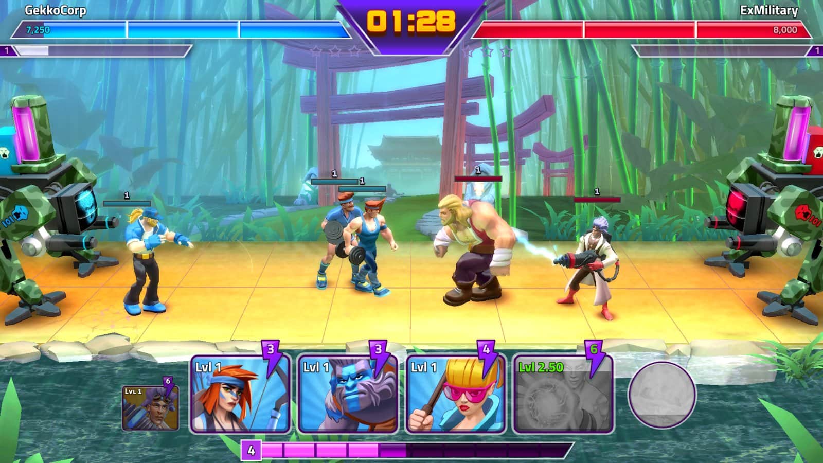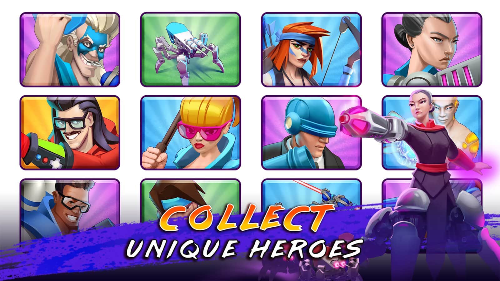 Rumble Kahramanları - Android için harika ve renkli bir aksiyon oyunu, burada rakiplerle epik savaşlara gireceksiniz. Her karakterin bir diğerini tamamladığı yenilmez kahramanlar takımınızı toplayın. Rakiplere meydan okuyun ve sayısız arenada savaşın, bu arada savaş taktiğinizi geliştirin. Yeni savaşçıları keşfedin ve ekibinizi onlarla güçlendirin. Tüm dünyadan oyuncularla oynayın, ekibinizin uyumunu ve gücünü gerçek anlamda test edin. Oyunun tüm görevlerini tamamlayın ve değerli ödüller ve bonuslar kazanın.