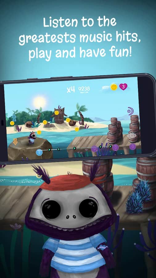 Ritim Macerası: Tıklama Oyunu – Android için 2D müzik platform oyunu, burada farklı dünyalarda müziğin ritminde koşacaksınız. Bu oyunda, arka plandaki müzikle eylemlerinizi senkronize ederek karşınıza çıkan engelleri ve düşmanları aşabileceksiniz. Belirli eylemleri gerçekleştirin ve oyunun size sunacağı ipuçlarını takip edin. Sevimli kahramanı ileriye taşıyın ve tamamen yeni bir oyun deneyimi yaşayın. 15 güzel çizilmiş seviyeyi geçin ve kahramanınız için sayısız kostüm ve ekipman açın. Liderlik tablosunda daha da yükseğe çıkın ve mükemmel sonuçlar elde edin.