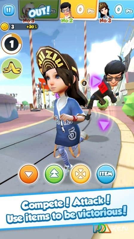 RunningM – Android için bir koşu oyunudur, burada şehri, eğlence parkını ve diğer yerleri kapsayan bir koşucuyu kontrol edeceksiniz. Koşun, zıplayın ve yolunuzdaki engelleri, bariyerleri, rampaları, engelleri, otobüsleri ve arabaları aşmak için elinizden gelenin en iyisini yaparak bitiş çizgisine ilk ulaşmaya çalışın. Çeşitli numaralar yapın ve yolda mantık bulmacalarını çözerek size doğru bitiş yolunu açan ipuçlarını keşfedin. Yenilmez koşucu ekibinizi toplayın ve en güçlü ve çevik oyunculara meydan okuyun. Yararlı bonusları toplayın ve bunları kahramanlarınızın yeteneklerini geliştirmek için kullanın.