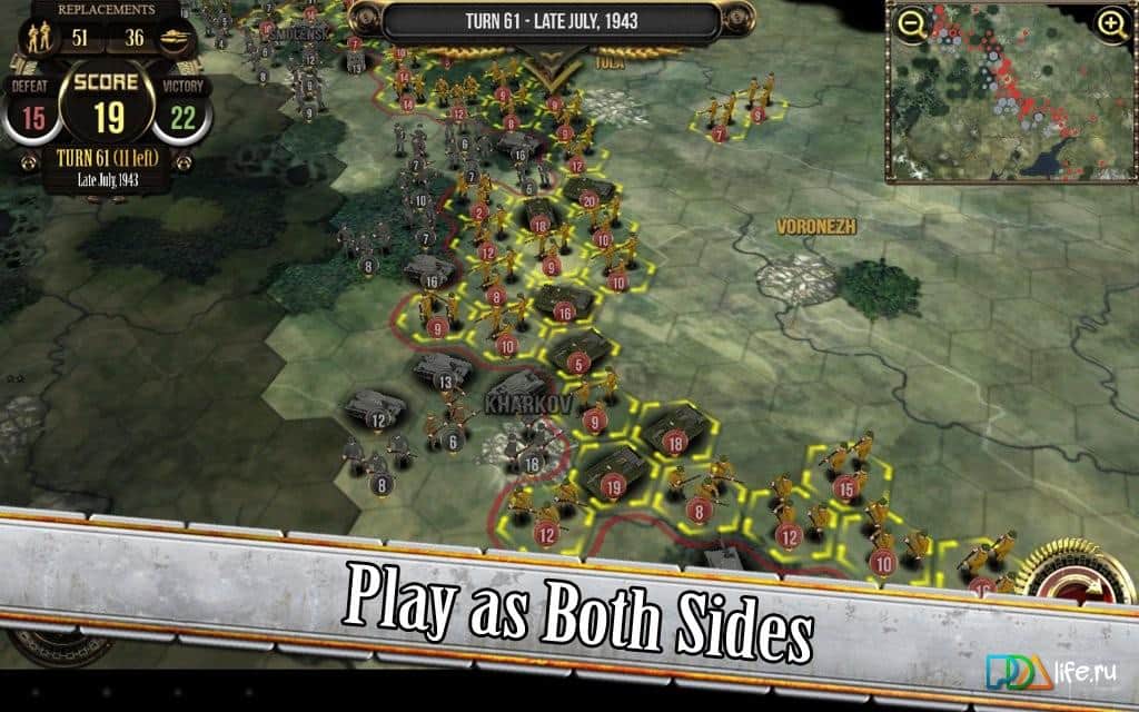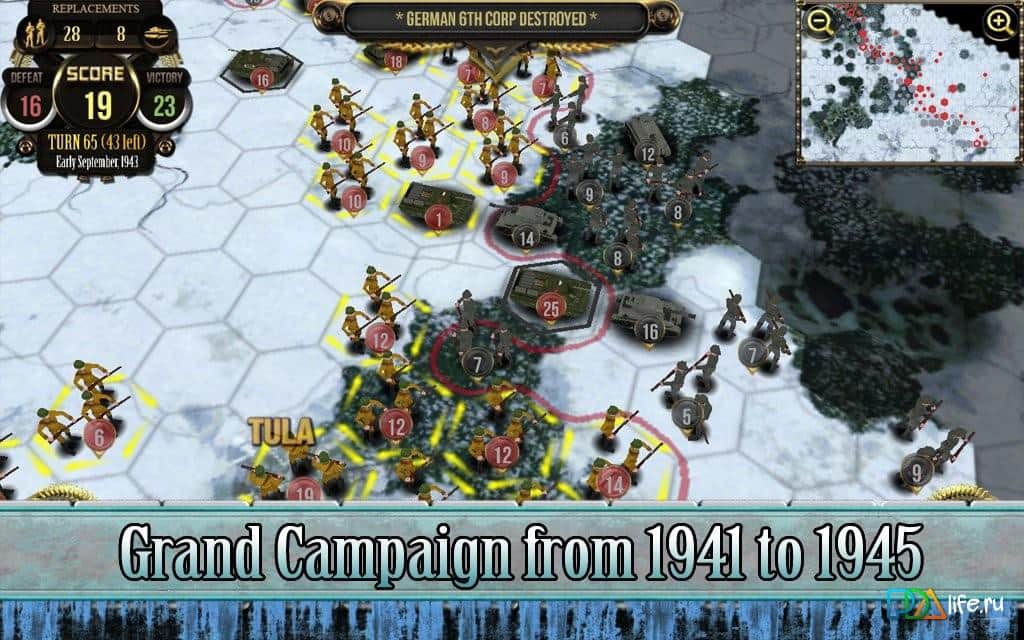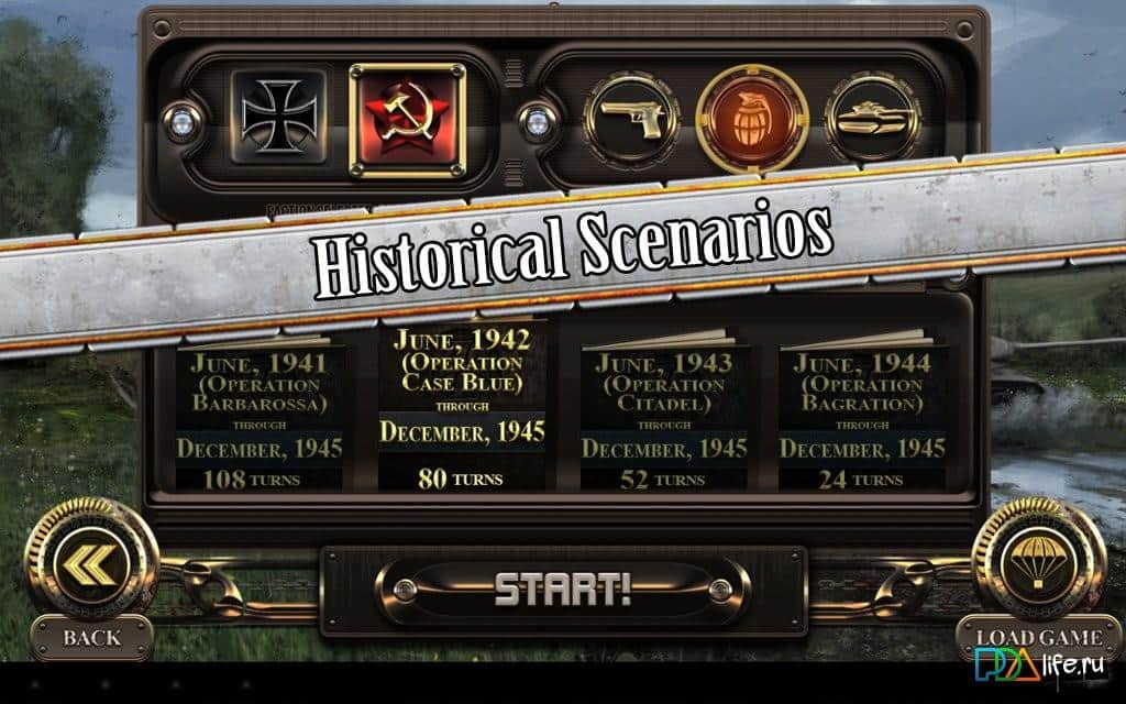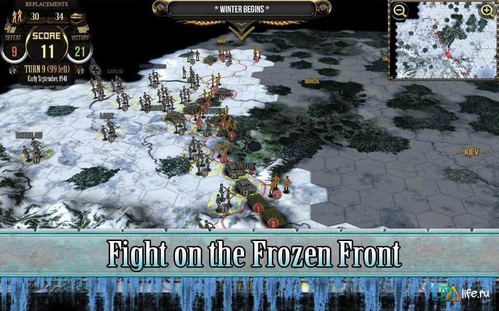 Rus Cephesi - Bizlere Büyük Vatanseverlik Savaşı hakkında hikaye anlatan iddialı bir Android stratejisidir. Oyun adından da anlaşılacağı gibi, faşist işgalcilere karşı savunma yapan Rusların tarafında oynayacaksınız. Seviyelerin temeli, 1941-1945 yılları arasında gerçekleşen gerçek savaşlara dayanmaktadır. Oyun, hücresel bir alanda adım adım strateji olarak tasarlanmıştır.