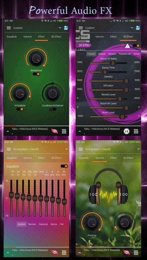 Harika bir müzik çalar, kullanıcıların ve müzik tutkunlarının kalbini kazanmayı başardı. Uygulama güçlü 3D efektler ve görselleştirme sunuyor. Güçlü 10 bantlı ekolayzır ile müzik çalar, tamamen ses efektleri ayarlarını destekliyor, 30'dan fazla ön ayar ile 3D müzik efektleri sunuyor.