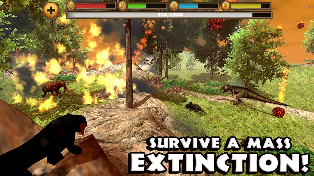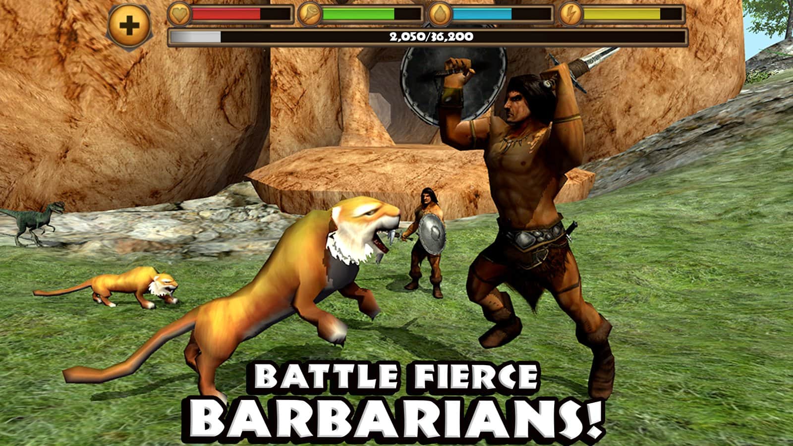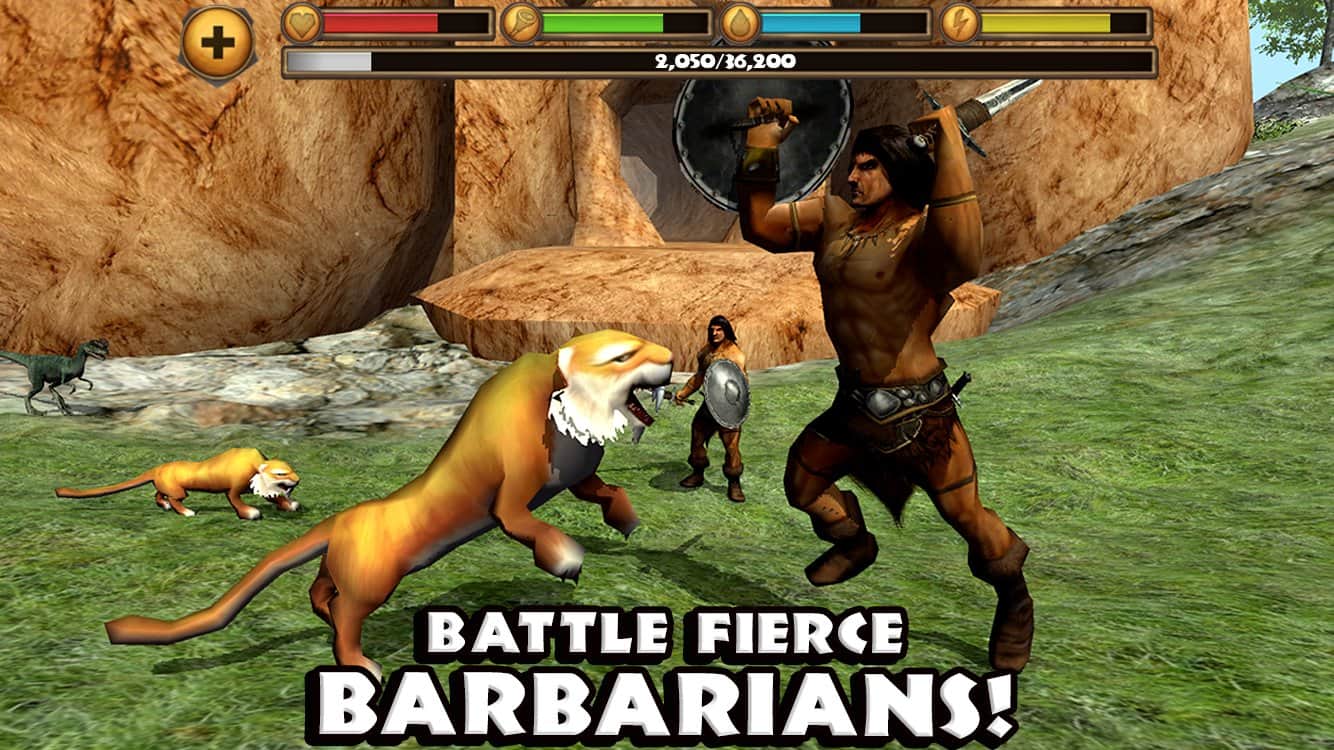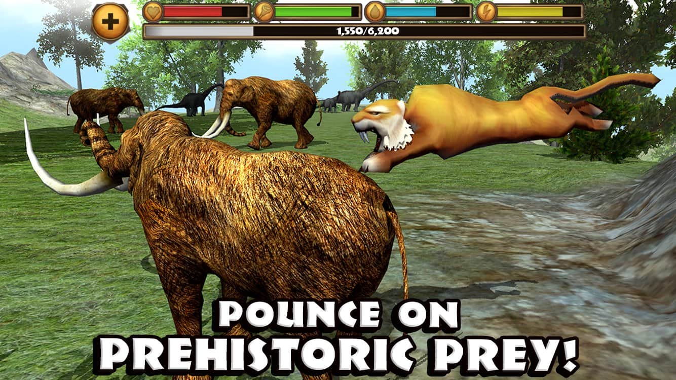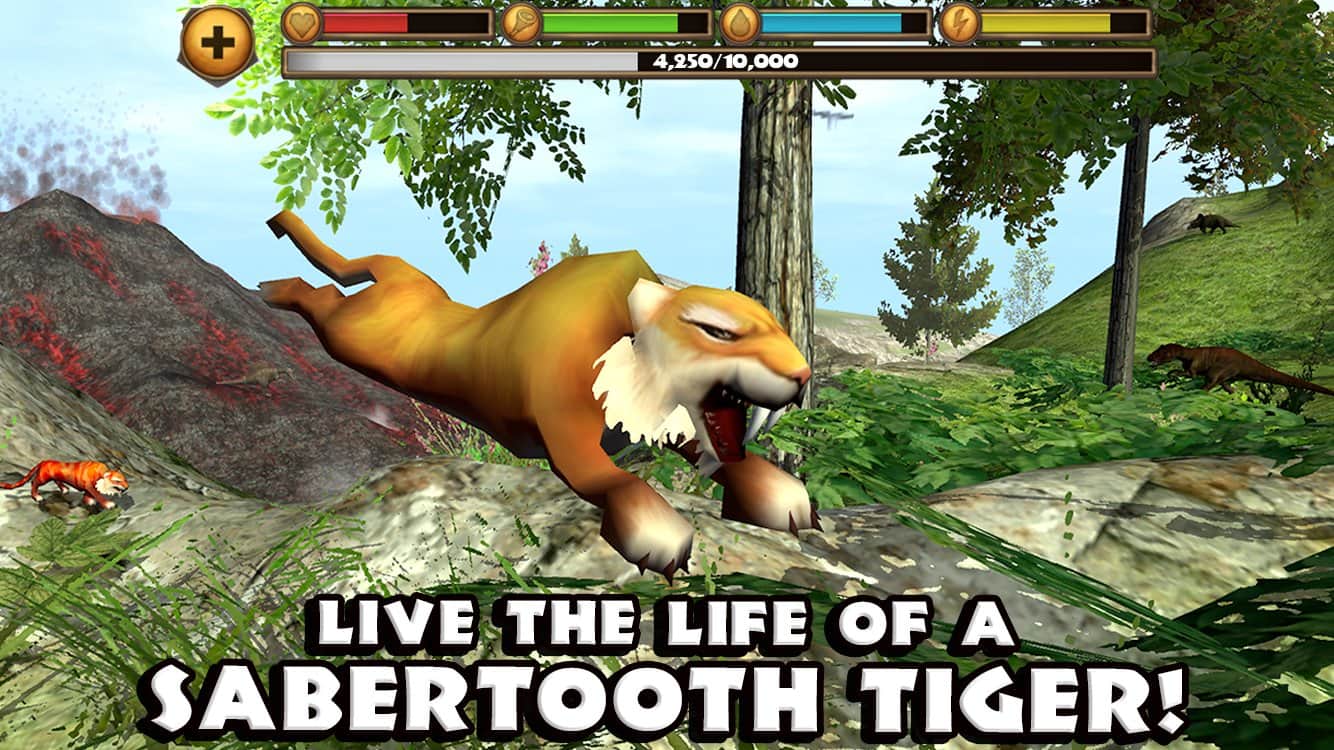 Sabertooth Tiger Simülatörü - Android için bir simülatör, sizi tarih öncesi dünyaya götürecek, burada dev avcılar ve dinozorlar hüküm sürüyor. Bu oyunda, tehlikeli bir dünyada hayatta kalması gereken sabertooth kaplanı olarak oynayacaksınız. Güzel manzaralar arasında hareket edin, yiyecek bulun ve dinozorlar ve tehlikeli barbarlar gibi güçlü düşmanlarla savaşın. Ailenizi kurmayı, beslemeyi ve tüm düşmanlardan korumayı deneyin. Bu, yırtıcınızın açlık, yorgunluk, susuzluk hissedeceği ve her seferinde unutursanız enerji kaybedeceği çok gerçekçi bir simülatördür. Düşmanlarla ölümcül çatışmalarda gücünüzü test edin ve keskin dişlerinizi ve pençelerinizi kullanın. Görevlerinizi yerine getirin ve kahramanınızı güçlendirerek yenilmez hale getirin.