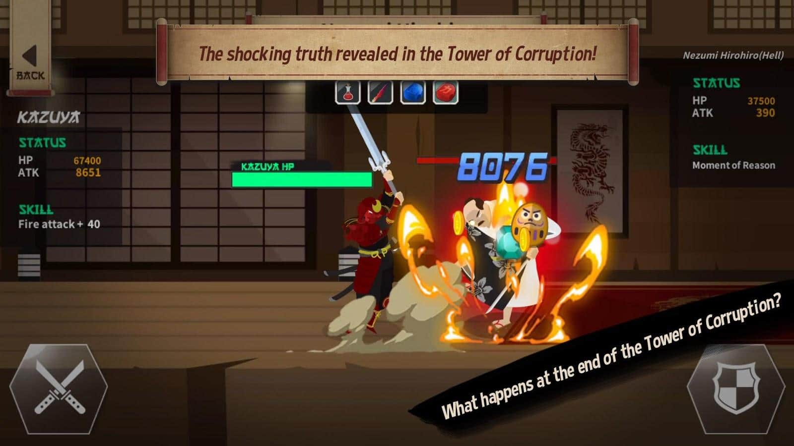 Samurai Kazuya - yatay aksiyon, olayları eski Japonya'da geçiyor, sizin rolünüz ise kötü güçlerle savaşmak için çağrılan bir samuray. Göreviniz, sadece düşmanları yok etmekle kalmayıp, aynı zamanda bilgi ve nadir metaller toplamak olacak; bunları kullanarak benzersiz kılıçlar yaratabilir ve daha güçlü patronları yok edebilirsiniz. Dinamik oynanış ve stilize edilmiş grafikler, sizi eski Japonya'nın atmosferine kaptıracak.