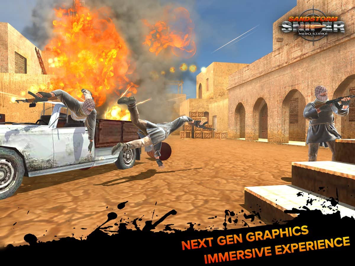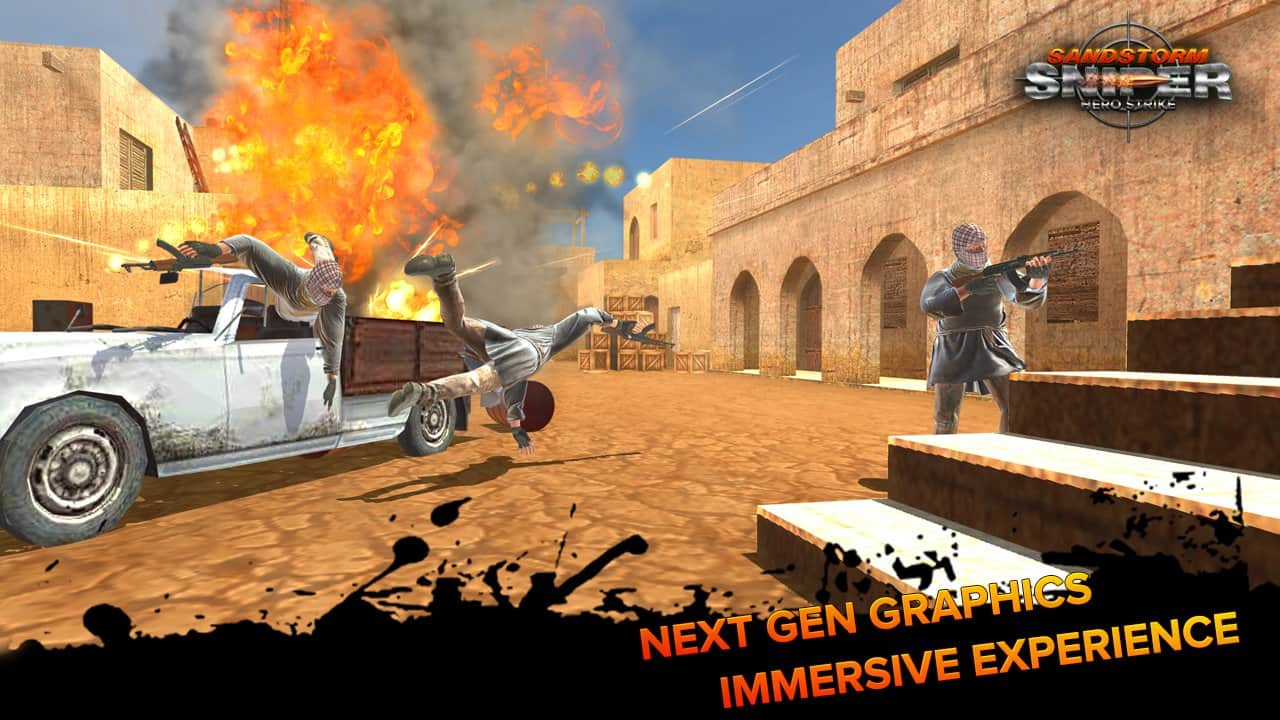 Kum Fırtınası Keskin Nişancı: Ölüm Vuruşu – dünya sürekli teröristlerin saldırıları altındadır. Biz, önündeki tüm hedefleri sistematik bir şekilde ortadan kaldıran bir keskin nişancı olarak oynuyoruz. Kumullar ve terörist gruplarının tam kalbinde bulunan küçük kasabalar teröristlerden arındırılmalıdır. Sizi doğrudan sıcak noktaya birinci dalga olarak gönderdi. Göreviniz, brifingde verilen tüm talimatları yerine getirmek, esasen tüm hedefleri ortadan kaldırmaktır. Oyun, esasen oldukça dinamik bir oyun akışına sahip üç boyutlu bir nişangah olarak tanımlanabilir.