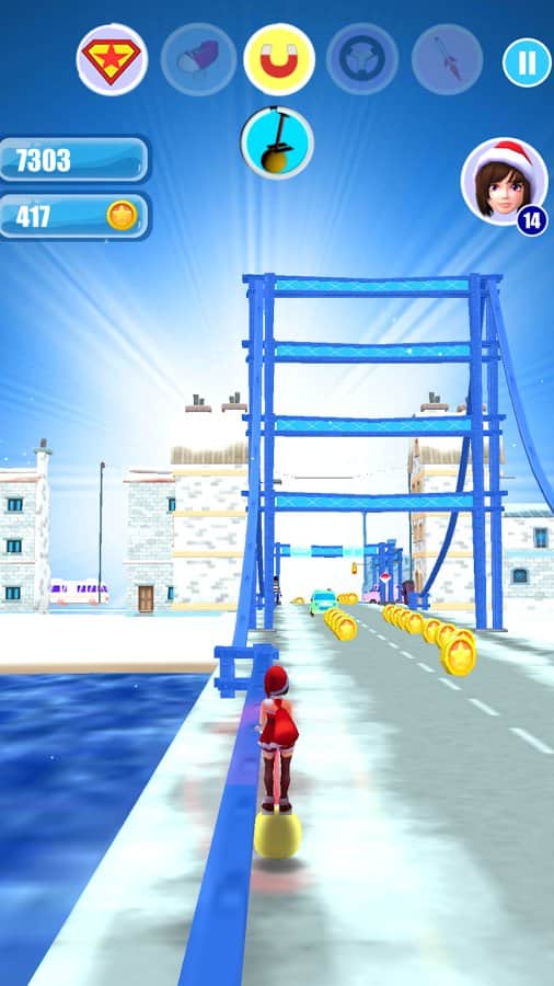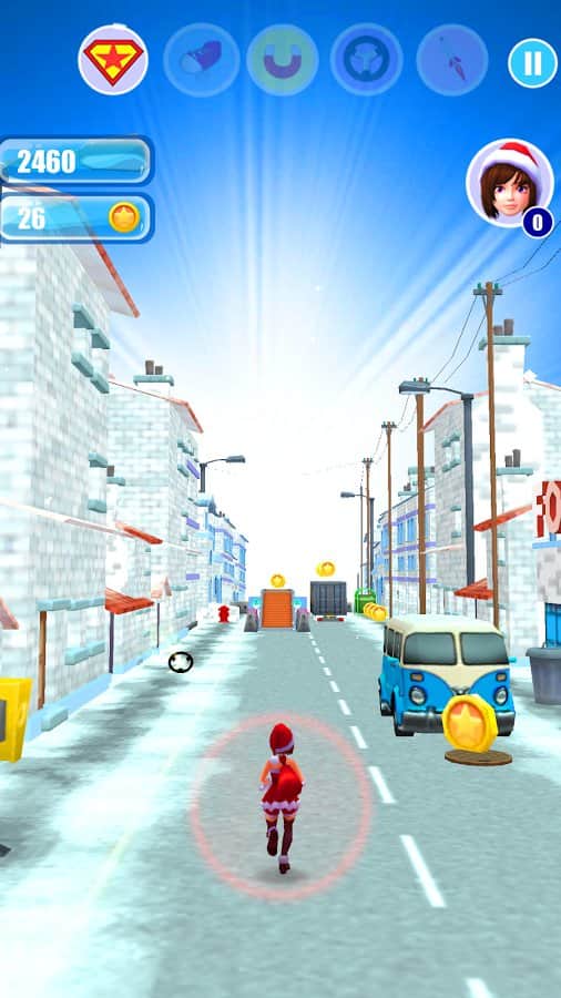 Noel Kızı Koşusu & Advent – Android için bir koşu oyunudur, burada Santa Claus'un yardımcısına çocuklara hediyeleri dağıtmasında yardımcı olacaksınız. Bu oyunda, ana karakterimiz çeşitli oyun mekanlarında koşacak, büyük şehirlerin sokaklarından köylere ve köprülere kadar. Oyunun ana karakterine kötü bir köpekten kaçmasına ve bu sırada yol üzerindeki tüm engelleri ve tuzakları aşmasına yardımcı olun. Karakteri farklı yönlere hareket ettirin ve araçlarla ve engellerle çarpışmalardan kaçının. Kızın zıplamasını veya nesnelerin altından kaymasını sağlamak için telefon veya tablet ekranınıza zamanında dokunun. Yol boyunca birçok güçlendirici ve madeni para toplayın. Oyunun yeni karakterlerini keşfedin.