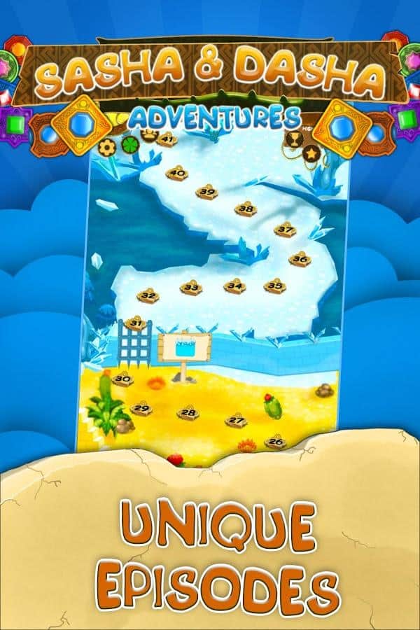 Sasha ve Dasha: Maceralar – tropik adada inanılmaz yolculuklarla dolu ilginç bir üçlü eşleme oyunu. Bu oyundaki ana göreviniz, aynı nesnelerden oluşan sıralar oluşturmak ve bunlardan mümkün olan en uzun zincirleri toplamaktır. Adada yolculuk yapın ve farklı yerlerde gizlenmiş eski hazineleri bulmaya çalışın. Elemanları sıralayın ve yerlerini değiştirin, sıralar oluşturun. Bu oyundaki her seviye, çeşitli görevlerle sizi mutlu edecek; bunları tamamlayarak bir sonraki seviyeye geçebileceksiniz. Zor seviyeleri geçin ve seviyeyi mümkün olan en hızlı şekilde tamamlamak için yardımcı böcekler, bombalar, çekiçler, gökkuşağı kalpleri ve shakerlar gibi birçok bonustan faydalanın.