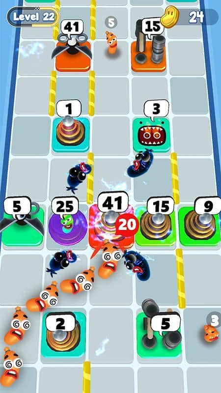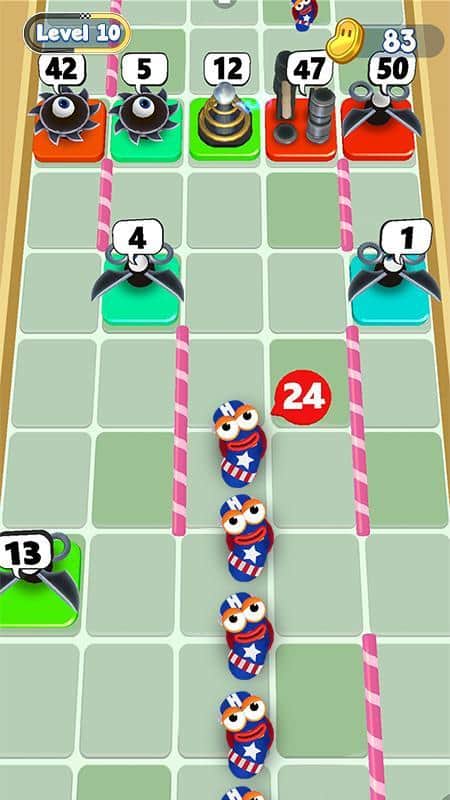 Sosis Yığını – sosislerden oluşan eğlenceli bir yılanı yönetin ve onu tehlikeli bir yoldan geçirin. Bu oyunda, tehlikeli seviyelerde hareket eden yılanı kontrol edecek ve engellerle çarpışmalardan kaçınacaksınız. Parmaklarınızın çevikliğine güvenin ve yılanı güvenli bir yoldan geçirin. Yolda karşınıza çıkan her engelin belirli bir dayanıklılığı vardır; eğer bu dayanıklılık yılanınızdaki sosis sayısından küçükse, onu kırabilirsiniz. Yolda bonusları ve güçlendirmeleri toplamayı unutmayın ve yeni seviyeleri açın.