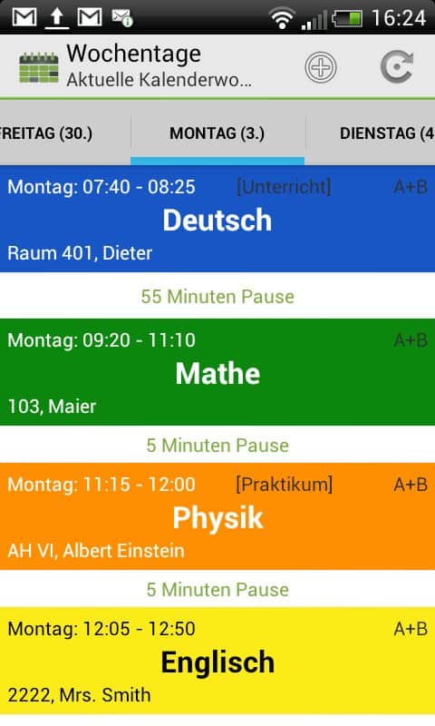 - Günlük (klasik) ve haftalık görünüm, sonraki kurs X.