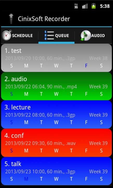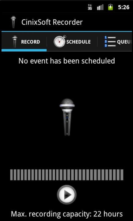 Zamanlayıcı Ses Kaydedici - önceden belirlenen bir zamanda açılabilen bir ses kaydedicidir. Birkaç gün öncesine kadar bir program oluşturma veya kaydı döngüsel olarak başlatma (günlük, haftalık, aylık) imkanı vardır. Uygulama, toplantıları, dersleri, dersleri kaydetmek için kullanılabilir, sesli notlar ve notlar almak için de kullanılabilir ve tüm bunlar zaman sınırlaması olmadan yapılabilir. Ses formatları seçimi: MP4, 3GP veya WAV ses formatı olarak. WAV ile karşılaştırıldığında, MP4 ve 3GP çok daha uzun süre kayıt yapma imkanı sunar. Kayıtlar, sosyal ağ Facebook, e-posta veya diğer yollarla kolayca paylaşılabilir.