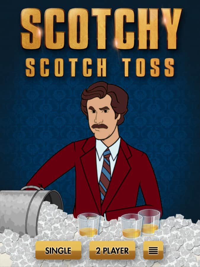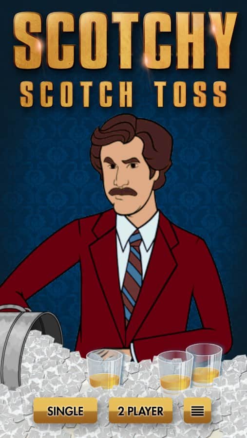 Scotchy Scotch Toss - efsanevi sunucu Ron Burgundy'nin hikayelerini dinleyeceğiniz bir android oyunu. Ancak onun konuşmaya başlaması için viski dolu bardağına buz küpü atmanız gerekiyor. Her başarılı atışta puan kazanacaksınız.