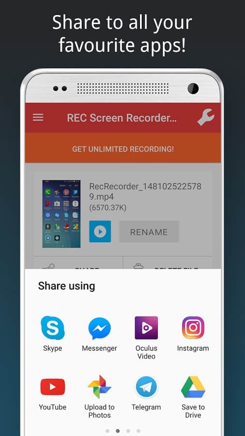 REC HD Ekran Kaydedici – telefonun veya tabletinle harika kalitede videolar kaydetmene olanak tanıyan bir uygulama! Herhangi bir cihazda ekran kaydı için iyi bir kalite elde etmek amacıyla SCR Ekran Kaydedici, video kodlaması için donanım hızlandırması kullanır. Bu uygulama yalnızca harika ve kaliteli bir kayıt sunmakla kalmaz, aynı zamanda Tegra desteği ile birlikte Nexus 7'yi de kapsar. Ayrıca, hata takibi ve analiz için uygulama anonim istatistikler toplar ve izler. Bu yazılım, LGPL çerçevesinde lisanslanan değiştirilmemiş FFmpeg 1.2 kodunu kullanır.