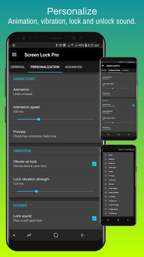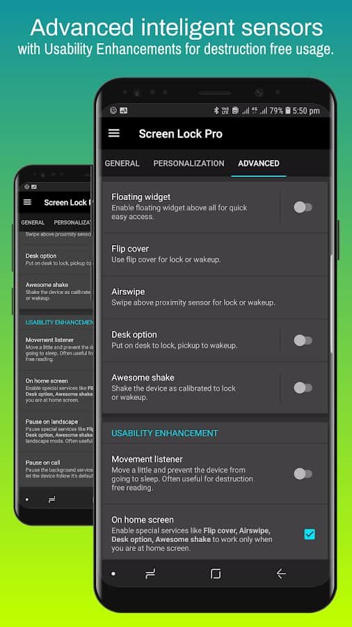 Screen Lock Pro - cihazınızı koruyarak "kalbinin" ömrünü uzatır. Bu uygulama, ekran kilidi için akıllı bir yaklaşım sunar; Cihaz Yöneticisi ve Smart Lock işlevlerini kullanarak, cihazınızı kolayca kapatıp kilitlemenizi sağlar. Uygulama, ekran kilitleme sürecini optimize eder ve anlık yanıt sağlamak için erişilebilirlik hizmetlerini kullanır (Android 9 ve üzeri için isteğe bağlıdır).