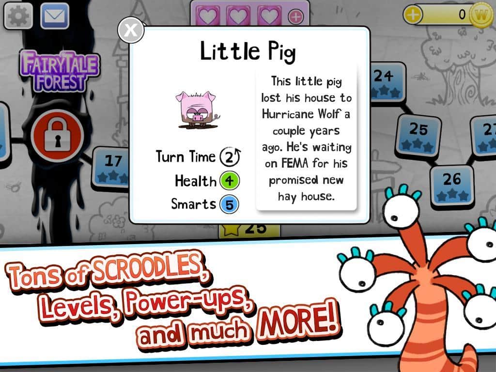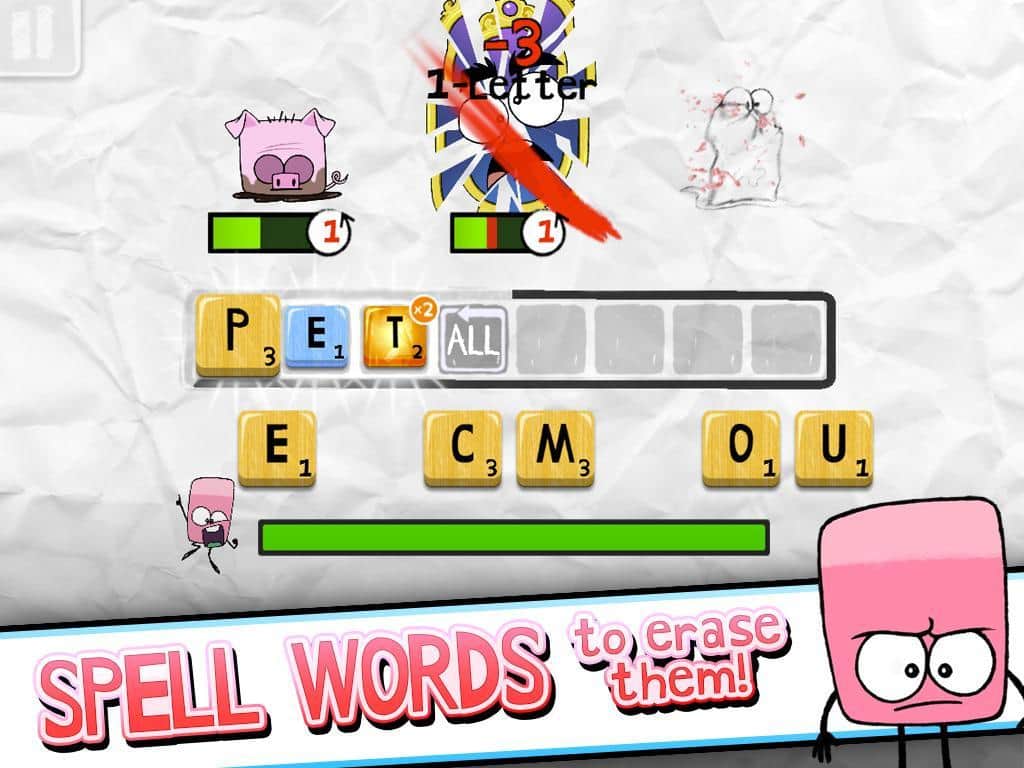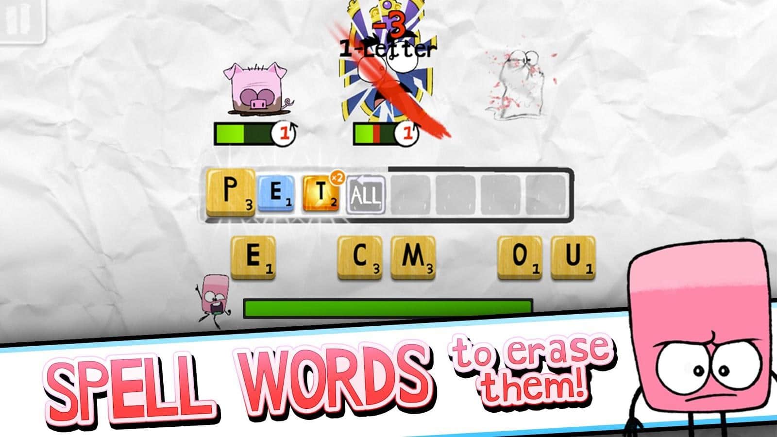 Scroodles - kelime savaşı, silgiyi kontrol altına alın ve yaramaz çizim grubunu yenmek için elinizden geleni yapın. Oyun kelimelerle ilgili olsa da, içinde harika eğlenceli karakterler bulabilirsiniz. Her karakter mükemmel bir şekilde animasyonlu ve çizilmiş. Benzersiz rakiplerin kendilerine ait zeka ve hız gibi yaşam özellikleri var. Bazılarını yenmek hiç de kolay olmayacak. Rastgele üretilen bonuslar oyuna daha fazla heyecan katacak. Arkadaşlarınızla rekabet edin ve en iyi oyuncu olun. Oyun Facebook sosyal ağı ile entegre mi? Başarılarınızı arkadaşlarınıza gösterebilirsiniz.