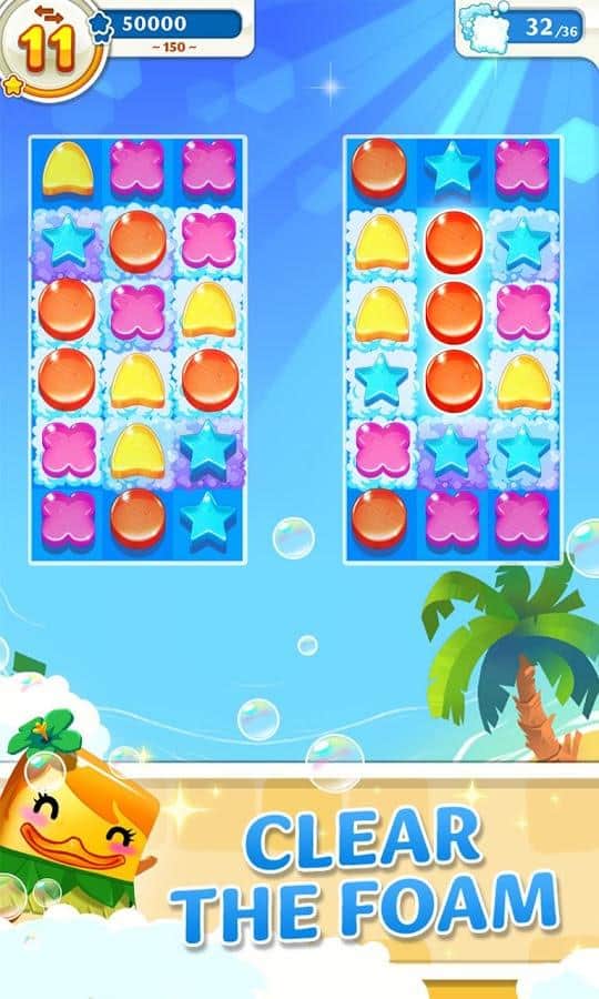 Scrubby Dubby Saga – Android için parlak ve renkli bir üçlü eşleştirme oyunu. Bu oyunda sabun baloncukları ülkesine heyecan verici bir yolculuğa çıkacaksınız. Göreviniz, bol köpüğün oluşumunu önlemek için sabunları sıraya dizmektir. Aynı renkli farklı nesnelerden harika kombinasyonlar yaparak yolunuzdaki köpüğü temizleyin. Yeni oyun modlarından yararlanın ve yeni arkadaşlarınızı ve Dixie adlı ördeği esaretten kurtarın. Kombinasyon vuruşları başlatın ve ekranda gerçekleşen harika özel efektleri izleyin. Arkadaşlarınızla oynayın ve bu oyundaki harika sonuçlarınızı onlarla paylaşın.