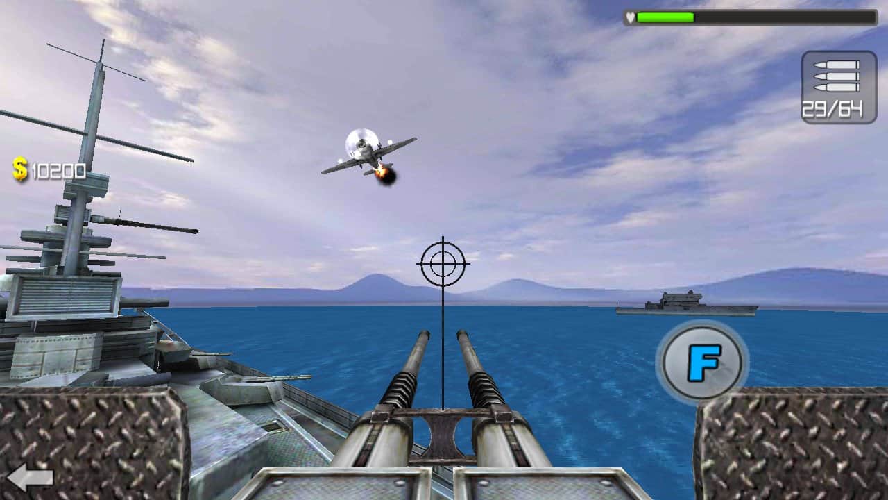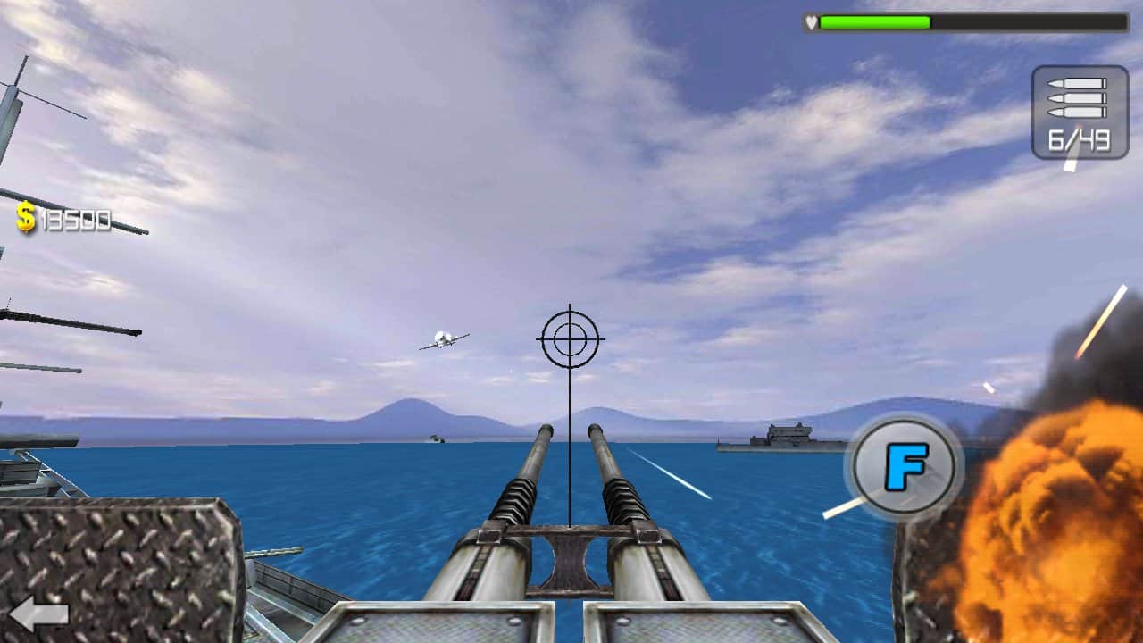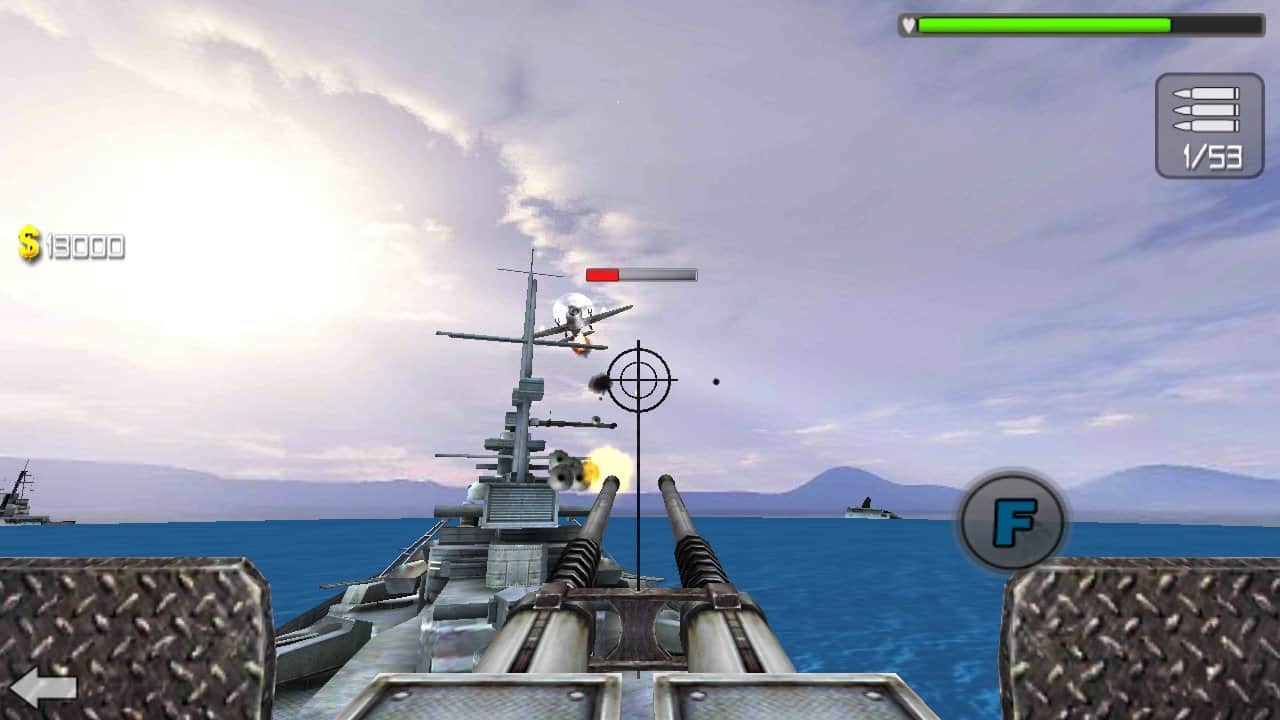 Deniz Savaşı 3D – Android'de deniz savaşı, burada düşman güçlerini yok edeceksiniz. Bu oyun sizi 1941 yılına götürecek, burada Japon İmparatorluk Donanması 400 uçakla Pearl Harbor'daki Amerikan askeri üssüne saldırdı. Bu oyunda hayat ve özgürlük için şiddetli ve hızlı savaşlar sizi bekliyor. Büyük bir muharebe gemisini yönetin ve olabildiğince fazla düşman uçağını vurmak için birçok top ve makineli tüfekten ateş açın. Düşmana sürekli ateş edin ve düşmanın üssünüzü yok etmesine izin vermeyin. Oyun, oyuncuları dinamik savaşlar ve iyi grafiklerle mutlu edecek, düşman uçaklarını yok ederken keyifli zaman geçirebileceksiniz. Her düşman uçağını vurduğunuzda yeterli puan kazanın ve bolca mühimmat satın alın.