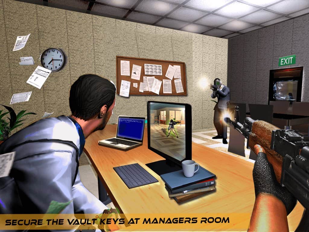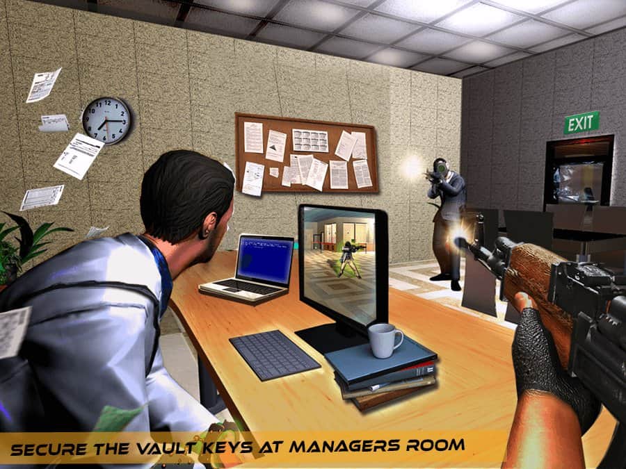 Gizli Ajan Soygun Kaçışı – Android için bir aksiyon oyunu, burada bir gizli ajan rolünü üstleneceksiniz ve soyguncu çetesini durdurmanız gerekecek. Aşırı suçlular ulusal bankanın binasına girdi ve soygun yapmaya karar verdi. Göreviniz onların bunu yapmasına izin vermemek. Bankaya sızın ve çeteyi arkadan saldırarak teker teker etkisiz hale getirin. Suçluların elindeki tüm silahlara, keskin nişancı ve saldırı tüfekleri, tabancalar, bombalar ve diğer silahları edinin. Size kasaya açılacak anahtarları arayın ve verilen görevleri yerine getirin. Büyük çatışmalara katılın ve nişan alma becerilerinizi gösterin.