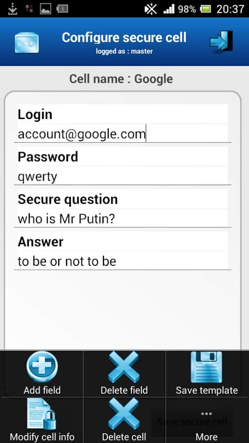 Güvenli kutu – Duke geliştiricisinden dosyaların şifrelenmesi, şifrelerin saklanması ve eylem denetimi için harika bir Android uygulaması. Gerekli verilerin şifrelenmesi için RSA ve AES algoritmaları kullanılmaktadır. Uygulama kendine özgü özellikler ve yetenekler içermektedir. Genel olarak uygulama oldukça kullanışlı, yönetimi kolay ve güzel. Verilerinizi gizlemek için iyi eğlenceler!