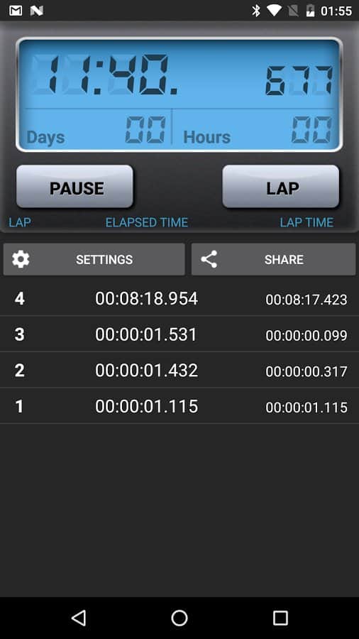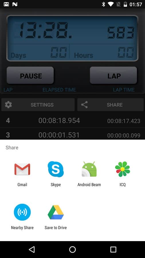 Android için Chronometre - Android için basit ve kullanışlı bir program. Uygulama cihaz yeniden başlatıldığında bile çalışmaya devam eder ve milisaniye hassasiyetiyle ölçüm yapmanıza olanak tanır.