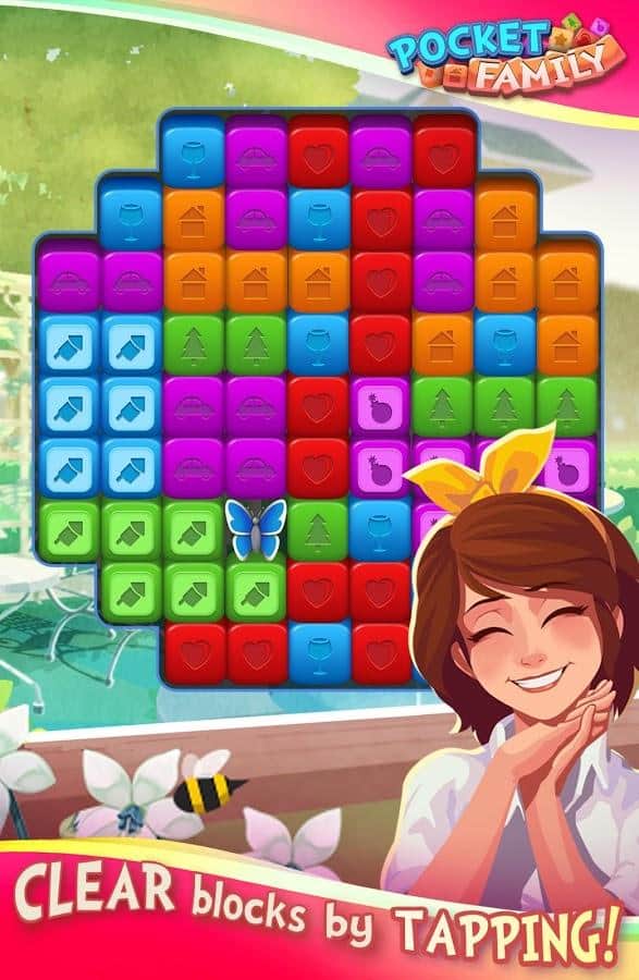 Pocket Ailesi - Pocket ailesine miras kalan eski konağı restore etme görevi. Göreviniz, aynı renkten 2 veya daha fazla bloğu bir araya getirerek para ve puan kazanmak, bu puanlarla odaları onarmaktır. Kendi zevkinize göre tasarım oluşturun ve dekorasyon seçin, odaları doldurun ve eski evi sıcak ve yaşanabilir bir mekâna dönüştürün. Bonuslar ve güçlendirmeler kazanın, platformları patlatın ve daha fazla ödül elde edin, dekor yerleştirin, iç tasarım yapın ve arkadaşlarınızı çay içmeye davet edin.