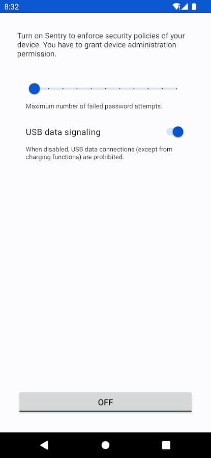 Sentry - Başarısız şifre denemelerinin sayısını sınırlamak ve USB üzerinden veri iletimini tamamen devre dışı bırakmak için yeni özelliklerin geniş bir listesini edinin! Kendi eylemlerinizi güvence altına alın ve gerekli durumlarda size yardımcı olacak ek yetenekleri uygulayın. Bu uygulama, belirli hedeflere ulaşmak için kullanışlı bir araç olarak kabul edilmektedir, bu nedenle mevcut özellikleri öğrenmeye ve geliştiricilerin ilk başta düşündüğü gibi kullanmaya çalışın. Deneyin ve sonuçları görün!