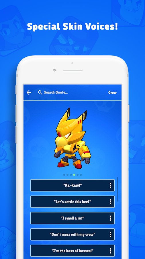 Brawl Speak dünyasına dalın — ünlü Brawl Stars evreninden ilham alan eğlenceli bir ses simülatörü. Onlarca farklı sesle oynayın, favori savaşçılarınızı taklit edin ve benzersiz seslendirmelerle eğlenceli ses kayıtları oluşturun. Replikalarla deneyler yapın, arkadaşlarınızı eğlendirin ve diksiyonunuzu geliştirin! Basit arayüz, zengin bir ifade seçeneği ve bolca eğlence sizi bekliyor. Hem hayranlar hem de sıradışı uygulamaları sevenler için mükemmel bir seçenek.