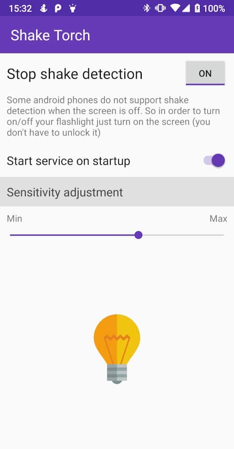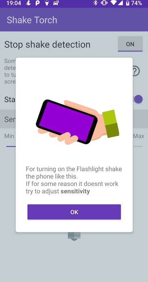 El fenerini açmak veya kapatmak için cihazı sallayın. Cihazınız kilitli olsa bile çalışır ve telefonunuz cebinizdeyken yanlışlıkla açılmasını önler. Ayrıca, sallama hassasiyetini ayarlayabilirsiniz. El fenerini açmak / kapatmak için cihazı sallamadan önce uygulamayı ilk kez açmanız gerekmektedir.