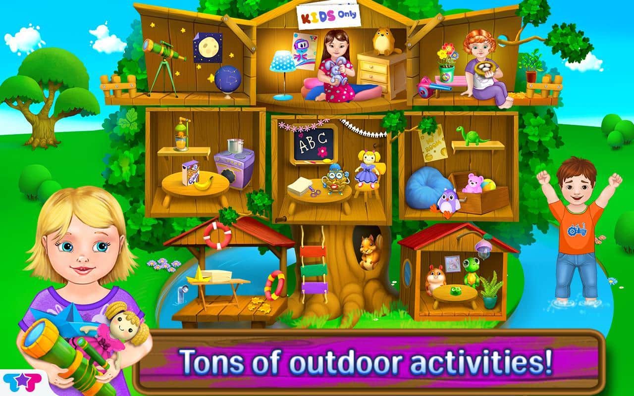 Çocuklar için Ağaçta Kulübe / Baby Tree House - Emma, Kim, Sofia ve Michael'ın harika ağaçtaki kulübelerinde maceralara katıl. Çatı katını onar, oyun odasında yaratıcı oyunlar oyna ve mutfakta bebeklerle kahvaltı yap. Geceleyin balkondan yıldızları izle ve Büyük Ayı, Akrep Takımyıldızı ve diğer takımyıldızlar hakkında daha fazla bilgi edin. Ayrıca hayvanlara ve bebeklere de bak! Bebeği bir battaniye ile ört ve ona lezzetli yemekler ver. Kuşların çatı katında yumurtalarını kuluçkaya yatırmalarına yardımcı ol ve hayvanların evlerine dönmelerine yardımcı ol, ayrıca birçok keyifli görev yapman gerekecek. Bu eğitici oyunu bebeğin için kaçırma ve onun tadını çıkarmasına izin ver.