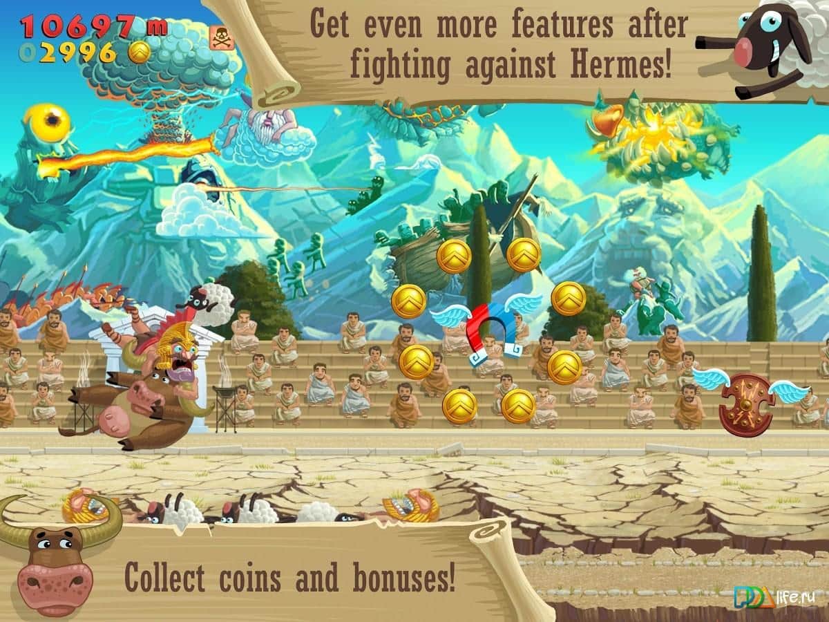Koyun Olur - Android için eğlenceli bir oyun, burada Hermes'i kontrol edeceksiniz, ilk olarak bitişe ulaşmaya çalışıyor. Bunun için diğer koşucuların etrafında manevra yapmanız, engelleri aşmanız ve koyunların üzerinde uçmanız gerekecek. Yeni ekipmanlar ve farklı yeteneklere sahip şık şapkalar satın almak için paraları toplayın. Bu eğlenceli oyunu arkadaşlarınızla oynayın ve en iyi sonuçları elde etmeye çalışın.