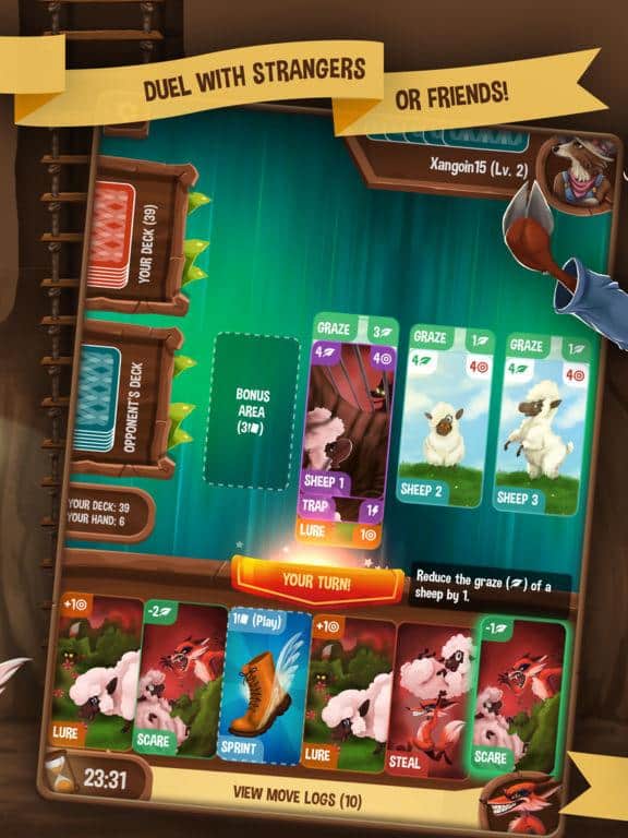 Koyun Çevirme - IOS için bir kart oyunu, burada koyunları koruyacak ya da çalacaksınız. Bu oyunda hem çoban hem de koyunları çalması gereken bir hırsız olarak oynayabilirsiniz. Merada toplamda üç koyun var, bunlardan ikisini kurtarmanız veya tuzağa düşürmeniz gerekiyor. Bu amaçla, çobanın hırsızı yenmesine ve koyunlarını ölümcül tuzaktan kurtarmasına yardımcı olacak kartları kullanın, ayrıca hırsızı yönetirken bu kartları koyunları tuzağa düşürmek ve elde etmek için de kullanacaksınız. Oyun ilerledikçe, oyunun oynanışını zorlaştıracak yeni kartlar alacaksınız. Tüm dünyadan gerçek oyunculara veya bilgisayara karşı oynayın.