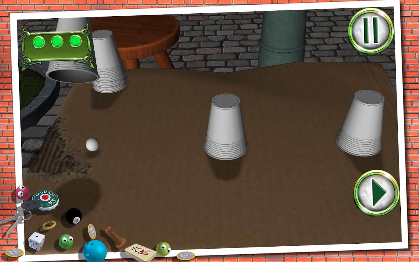 Kapsül Oyunu - Android için bir fincan oyunu, burada gözlerinizi oldukça eğitmeniz gerekecek. Bu oyunu genellikle insanlar sokakta ve para ile oynar, ancak şimdi bu ilginç oyunu oynama ve topun hangi fincanda olduğunu belirleme şansına sahipsiniz. Oyunun amacı, masaya üç veya daha fazla fincan yerleştirilmesidir, birine top konur ve fincanlar hareket ettirilerek sizi kandırmaya çalışılır. Tüm bu manipülasyonlardan sonra, hangi fincanda kutsal topun olduğunu tahmin etmek sizin görevinizdir. Bu oyun sayesinde gözlerinizi eğiterek doğru fincanı tahmin edebilirsiniz.