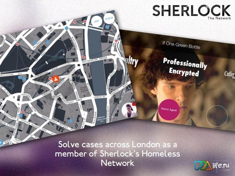 Sherlock: Ağı – oyun, her durum için çeşitli bulmacalardan oluşan bir seti temsil ediyor. Sherlock'un dünyasına dalın ve onunla birlikte çeşitli bulmacaları çözün. Oyun, filmden fotoğraflar ve ayrıca özel bir video içeriyor. Sherlock Holmes sizin için acil bir mesaj bırakıyor. Son suçun çözülmesine yardımcı olmanızı istiyor. Cep telefonunuzla Londra'nın sokaklarına çıkmalı ve tüm bilmeceleri çözmelisiniz.