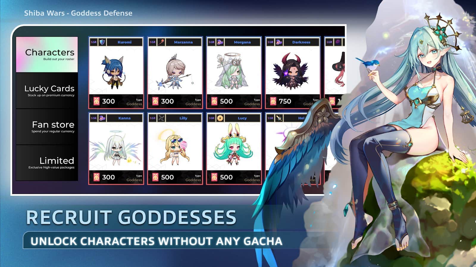 Anime estetiği: Farklı illüstratörlerden gelen benzersiz eserlerle anime stilinde oluşturulmuş karakterlerin toplanmasının tadını çıkarın. Tüm tanrıçalar sevimli chibi stillerinde tasvir edilmiştir, bu da oyuna eşsiz bir çekicilik ve görsel bir cazibe katmaktadır.