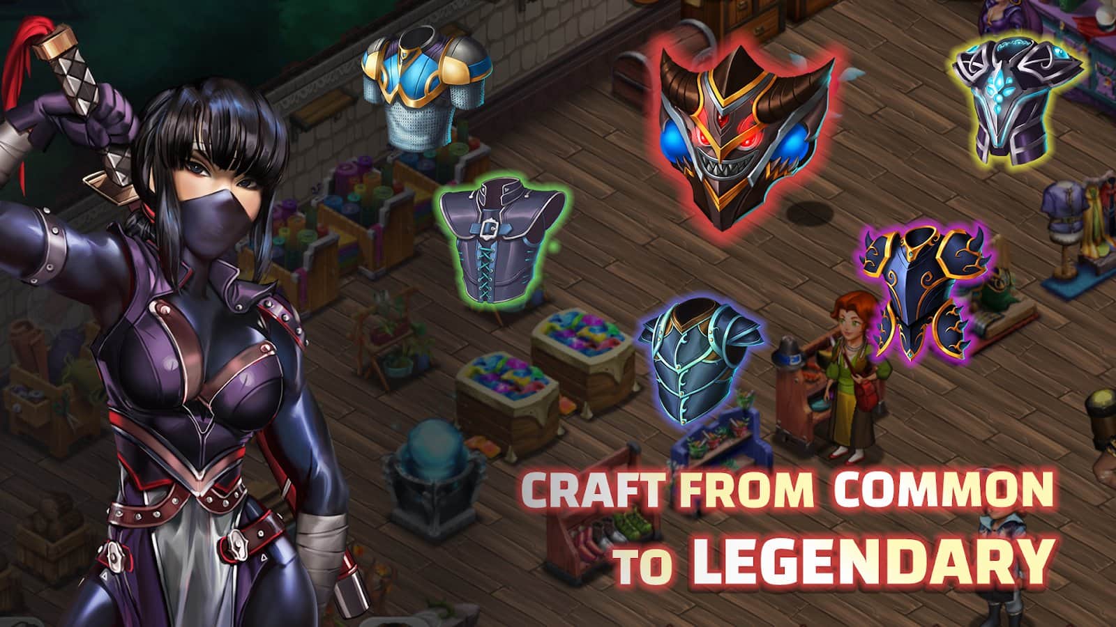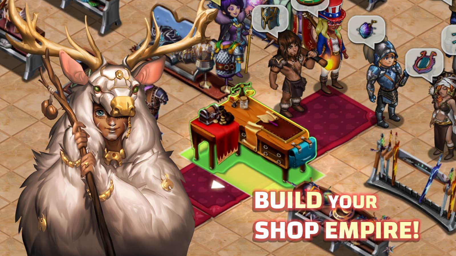Dükkan Kahramanları – sıradışı eşyalar, eserler ve diğer fantastik nesnelerden oluşan kendi dükkanınızı yaratın. Personeli işe alın ve eğitin. Bu tür masalsı dükkanların mogulu olun, dünyadaki sıradışı eşyaları satın alın ve daha yüksek fiyatlarla satın. Kendi kahramanlarınızı oluşturun ve onları yeni eşyalar kazanmak için epik görevler yapmaya gönderin. Yeni planları açın, arkadaşlarınızla ve komşularınızla ticaret yapın ve krallıktaki en iyi şehri inşa edin. Zanaat yapın, onlarca yeni parşömeni toplayın ve kahramanlarınızı yeni silahlarla donatın. Yardıma ihtiyacınız olursa bir arkadaşınıza başvurun, kesinlikle size yardımcı olacaktır.