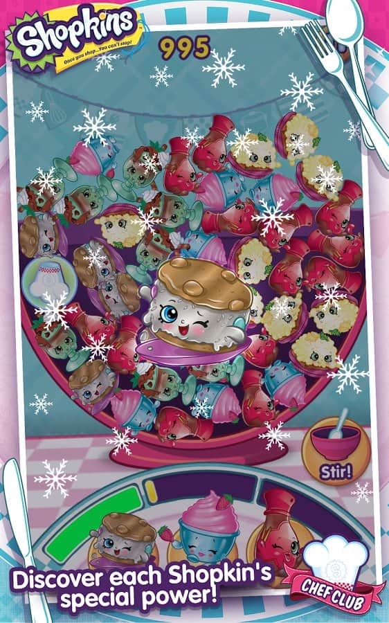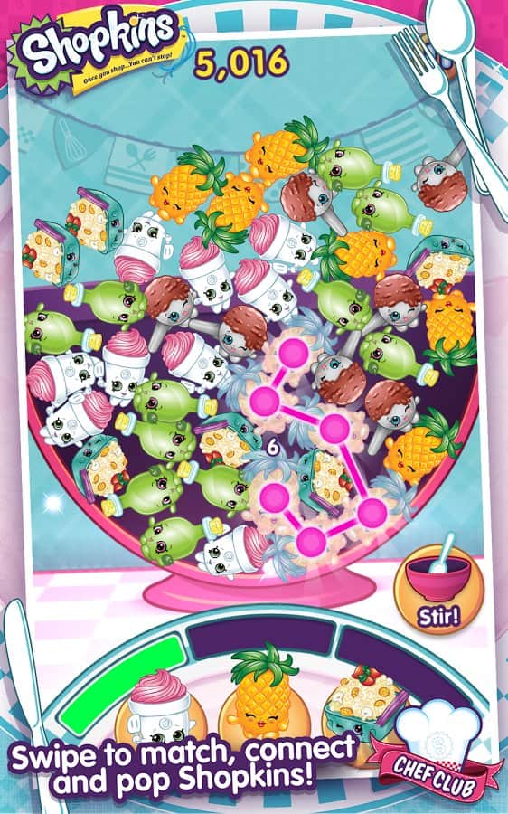 Shopkins: Şef Kulübü - Android için üçlü eşleştirme türünde bir oyundur, burada eğlenceli oyuncaklar dünyasında yer alacaksınız. Oyunda, devamlı bir hat ile aynı oyuncakları birleştirip oyun alanından kaldırarak diğerleri için yer açmalısınız. Gözlem yeteneğinizi, mantığınızı ve dikkatinizi geliştirerek seviyeleri mümkün olan en hızlı şekilde geçin ve yeterli puanı toplayın. Kendinize özgü bir oyuncak koleksiyonu toplayın ve her gün yeni yemek tarifleri keşfedin. Belirlenen hedefe ulaşmak için mümkün olduğunca fazla nesneyi birleştirip seviyeleri geçin. Oyunda toplamda 119 karakter, 21 tarif ve sayısız seviye bulunmaktadır.