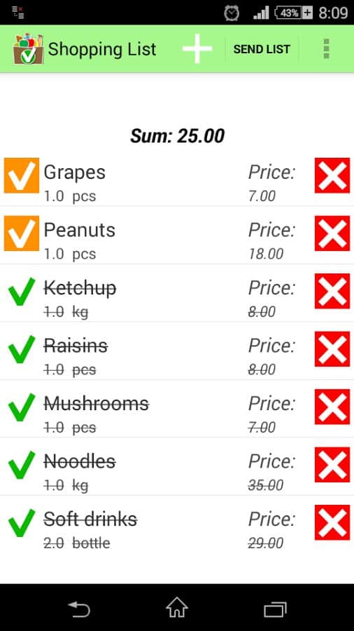Ürün alındıktan sonra ürünün üzerini çizebilir ve fiyatını ekleyebilirsiniz. Uygulama öğrenmesi kolaydır, hatta çocuklar bile bununla başa çıkabilir.