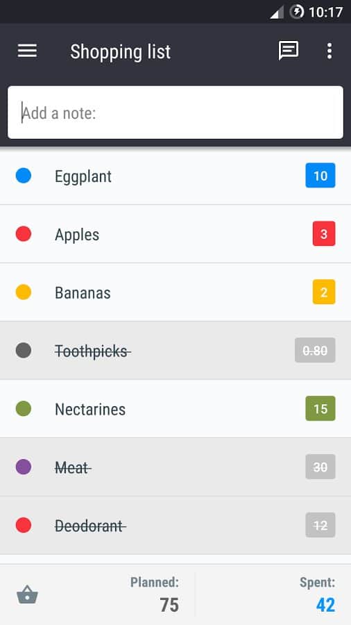 Alışveriş listesi - Bu, olabilecek en basit alışveriş listesi. Zira birçoklarımız sık sık kâğıda ne almamız gerektiğini yazar, sonra onu kaybeder ve önemli bir şeyi unuturuz. Sonuçta, tekrar süpermarkete gitmek ve unuttuğunuz şeyi aramak zorunda kalırsınız. Bu uygulama ile her şey çok daha basit; sadece kendi listenizi oluşturmanız yeterli ve sadece bir dokunuşla aldığınız ürünleri çizmeniz mümkün. Böylece, sadece neye ihtiyacınız olduğunu hatırlamakla kalmaz, aynı zamanda satın alınan ürünleri henüz almanız gerekenlerden kolayca ayırabilirsiniz.