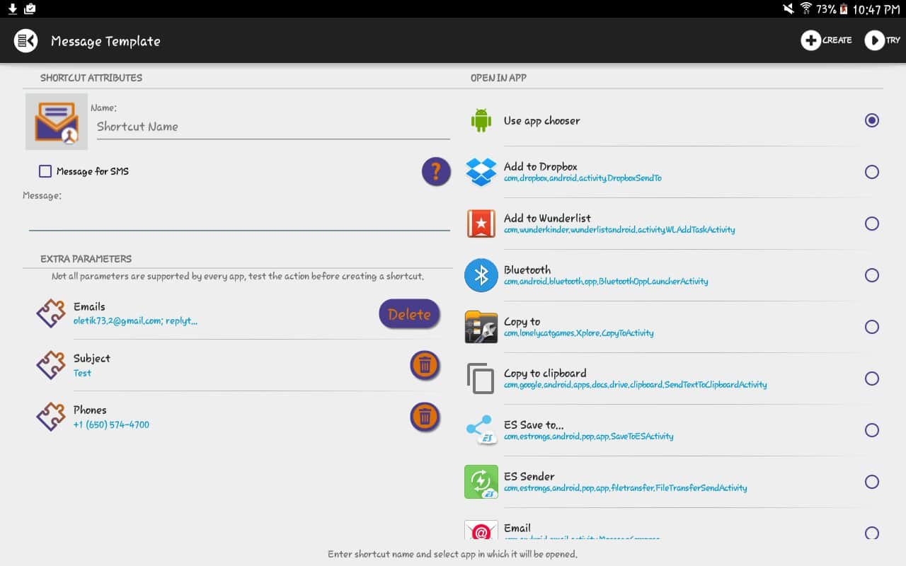 Yorumlar ile Shortcut Creator üzerinde Android