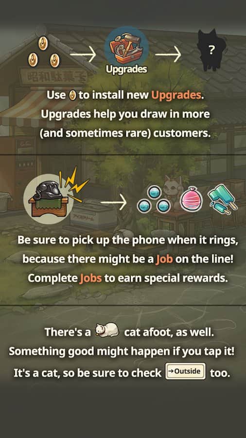 Showa Şeker Dükkanı 3: Büyükanne'nin Mırlayan Postacısı - zavallı yaşlı kadına küçük kedisiyle birlikte dükkanı doğru bir şekilde yönetmesi için yardım edin, böylece dükkan çok kâr getirir. Farklı tatlar, şekiller, iç dolgular ve diğer özelliklerle şekerler satın. Sürekli gelir getiren bu harika mekana istediğiniz zaman gelin. Reklamı görmeden önce böyle güzel bir tatlı evrenin varlığından habersiz olan cömert müşterilere hizmet verin. İşinizi geliştirin, alanınızı ve ürün katalogunuzu genişletin. Uzun bir hikaye geçirin ve ardından beklenmedik bir sonu ortaya çıkarın.