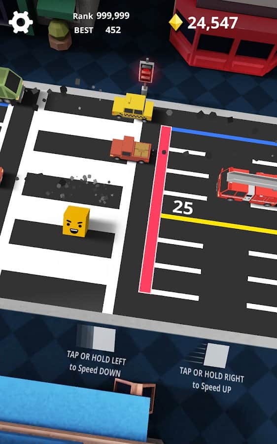 Servis Koşusu - Caddeden Geç - küplü kahramanı kontrol edin ve onu araçların tekerlekleri altında ezilmekten kurtarın. Bu oyunda bir küpü kontrol edecek ve onun yaya geçidinde hareket etmesine yardımcı olacaksınız, bu sırada kaza durumlarından ve giden araçlarla çarpışmalardan kaçınmalısınız. Mümkün olan en hızlı şekilde ileri geri hareket edin ve gerektiğinde hızınızı yavaşlatın. Son derece dikkatli ve temkinli olun, çünkü bazı araçlar da yönlerini değiştirme veya hızlarını artırma özelliklerine sahiptir. Beklenmedik manevralar yapın ve bu oyunda harika sonuçlar elde edin.