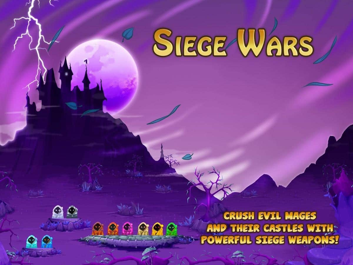 Kușatma Savaşları - insanları köleleştiren büyücülere karşı direnin ve mancınıkları kullanın. Yüzyıllar boyunca büyücülerin baskısından mustarip olan insanlar, bilimsel bilgilerini kullanarak mancınıklar, balistalar ve kuleler toplayarak büyücülerin saraylarını kuşatmak için ayaklandılar. Mancınık ile mermileri fırlatın ve sarayları yok edin, bu arada düşmanlarınızın kullandığı büyülerden kaçının. Üç dünyada 80 benzersiz seviyeyi geçin ve tüm düşman saraylarını ve sakinlerini yok edin. Oyunda sizi 10'dan fazla farklı büyücü bekliyor; her biri savunma için benzersiz özelliklere sahip. Oyun sırasında çeşitli büyülü kalkanlar şeklinde bonuslar kullanın ve silahlarınızı ve mühimmatınızı geliştirin.