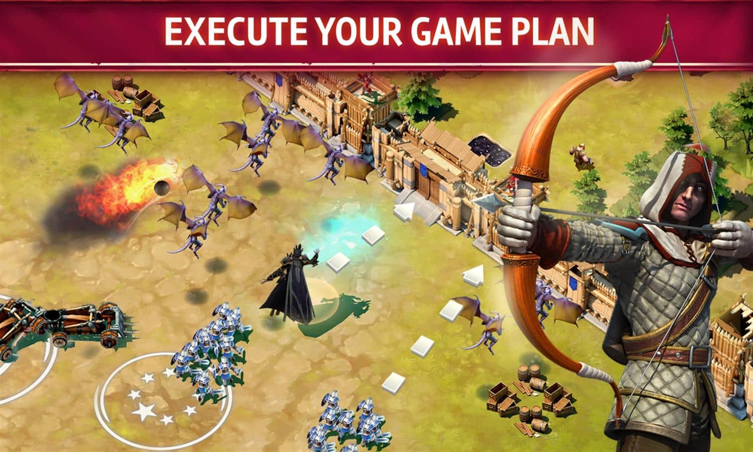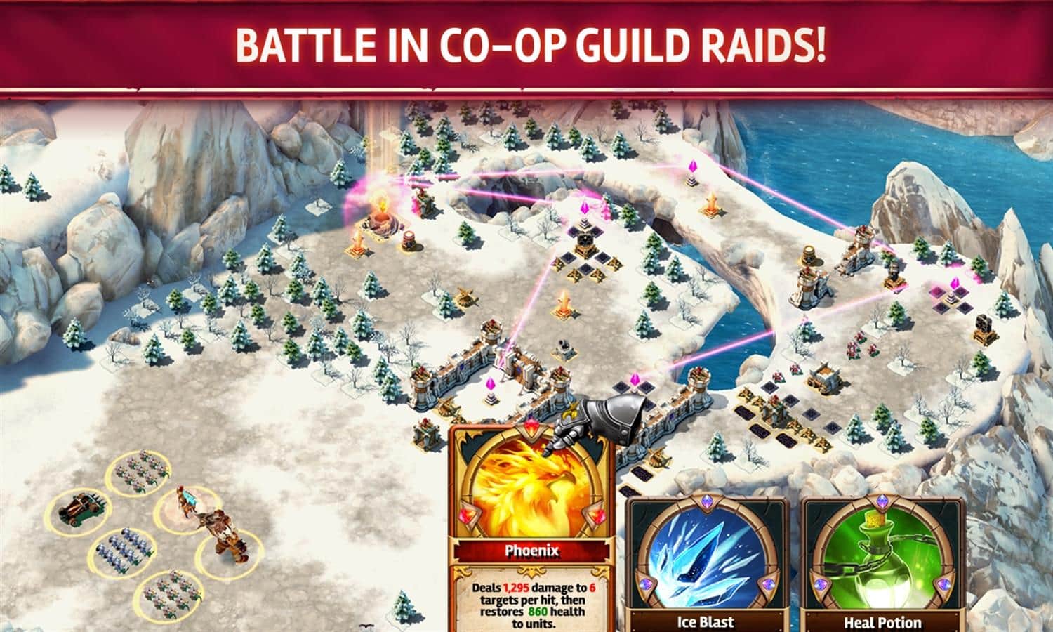 - Düşmanları dondurun, yıkıcı taşlar fırlatın ve ejderhaların gücünü kullanın