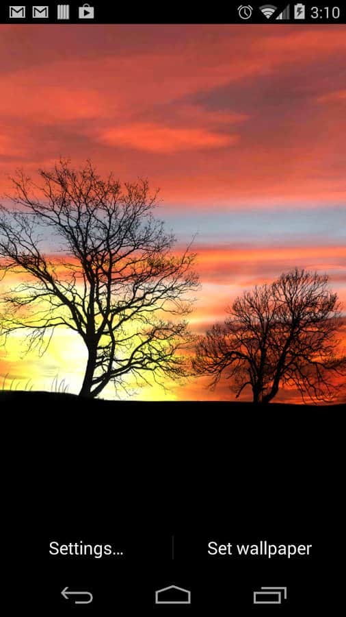 Silhouette Canlı Duvar Kağıdı - çağımızın romantiklerine hitap eden bu duvar kağıtları sizi kayıtsız bırakmayacak! Harika gün batımları artık Android cihazınızda bu canlı duvar kağıtları sayesinde mevcut. Onları ağaçların arkasında, rüzgâr türbinlerinin yanında veya şehir siluetleri arasında izleyebilirsiniz. Ayarlarda gökyüzünün rengini ve rüzgarın yönünü, animasyonu seçebilir veya sadece daha parlak hale getirebilirsiniz! Silhouette Canlı Duvar Kağıdı'ndan romantik canlı duvar kağıtlarını aşağıda verilen bağlantıdan ücretsiz olarak indirebilirsiniz!