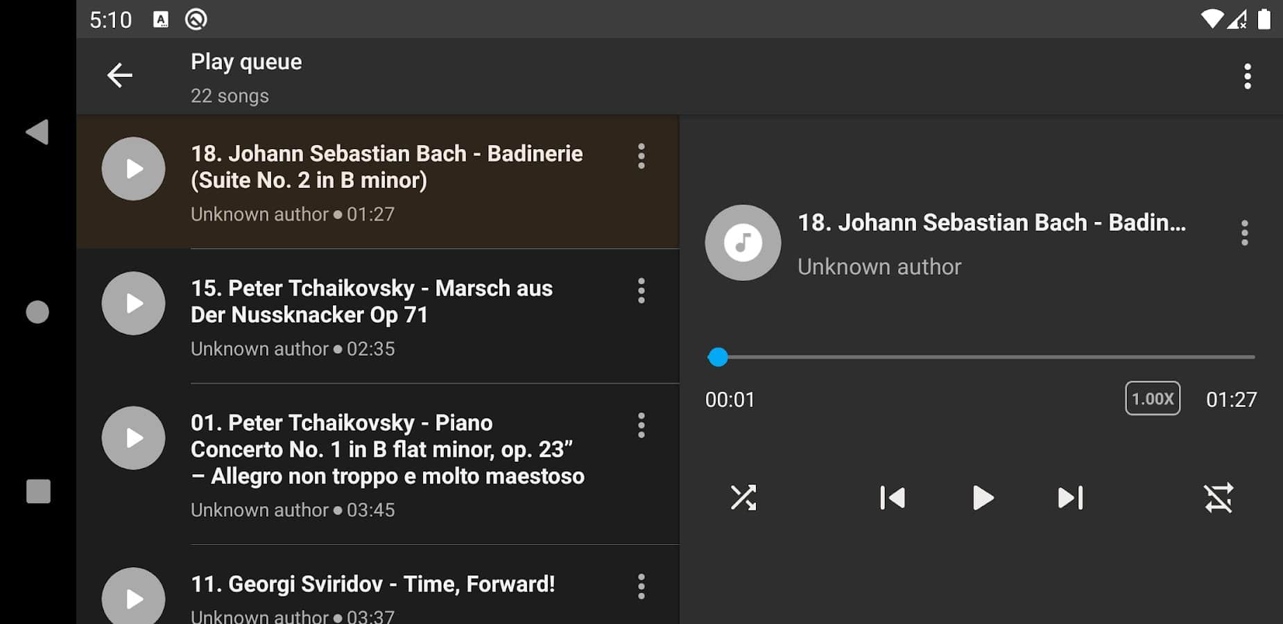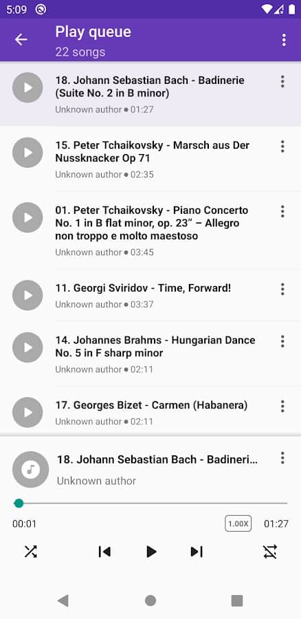 Basit Müzik Çalar uygulaması, favori müziklerinizi klasörlerden, albümlerden ve çalma listelerinden sırayla veya rastgele dinlemenizi sağlar.