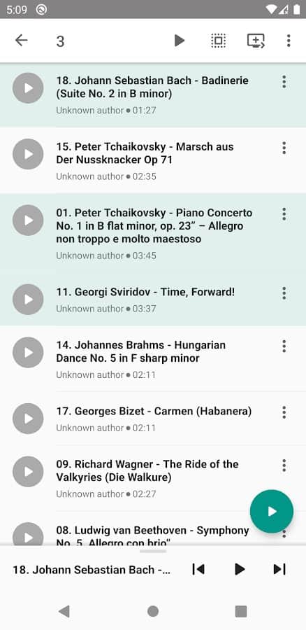 - Şarkıları çalma için 2 mod - rastgele veya sırayla;