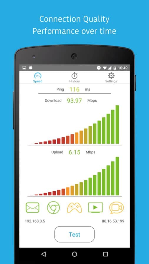 Basit Hız Testi - Ödediğiniz rakamları yansıtmayan çok düşük bir internet hızı mı? O halde bu sorunu bir kez ve herkes için çözün, internet bağlantı hızınızı ve kalitesini kontrol edin ve evinizin farklı noktalarından veya dışarıda test edin. Böylece internet bağlantınızın kalitesini kesin olarak öğrenebilirsiniz. Ancak bu uygulama sadece hızı öğrenmekten fazlasını yapabilir, nerede, ne zaman ve en önemlisi ne kadar veri harcadığınızı gösterecektir.