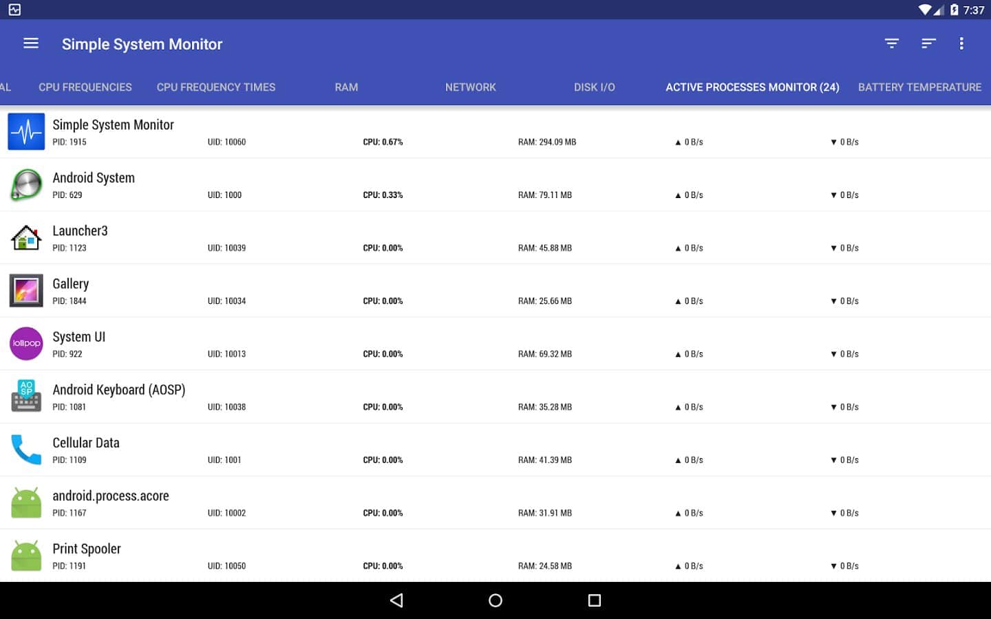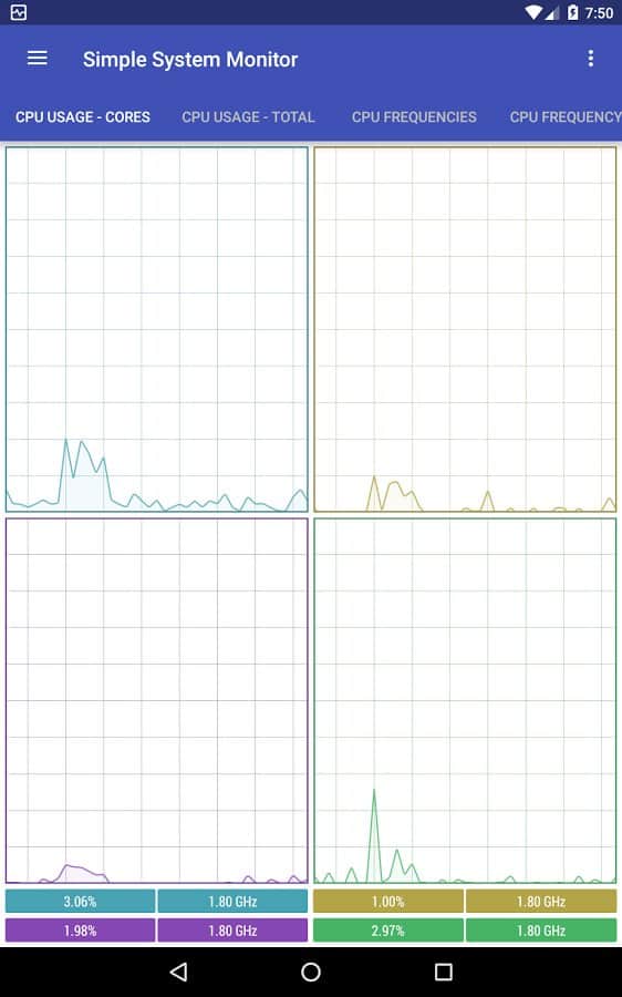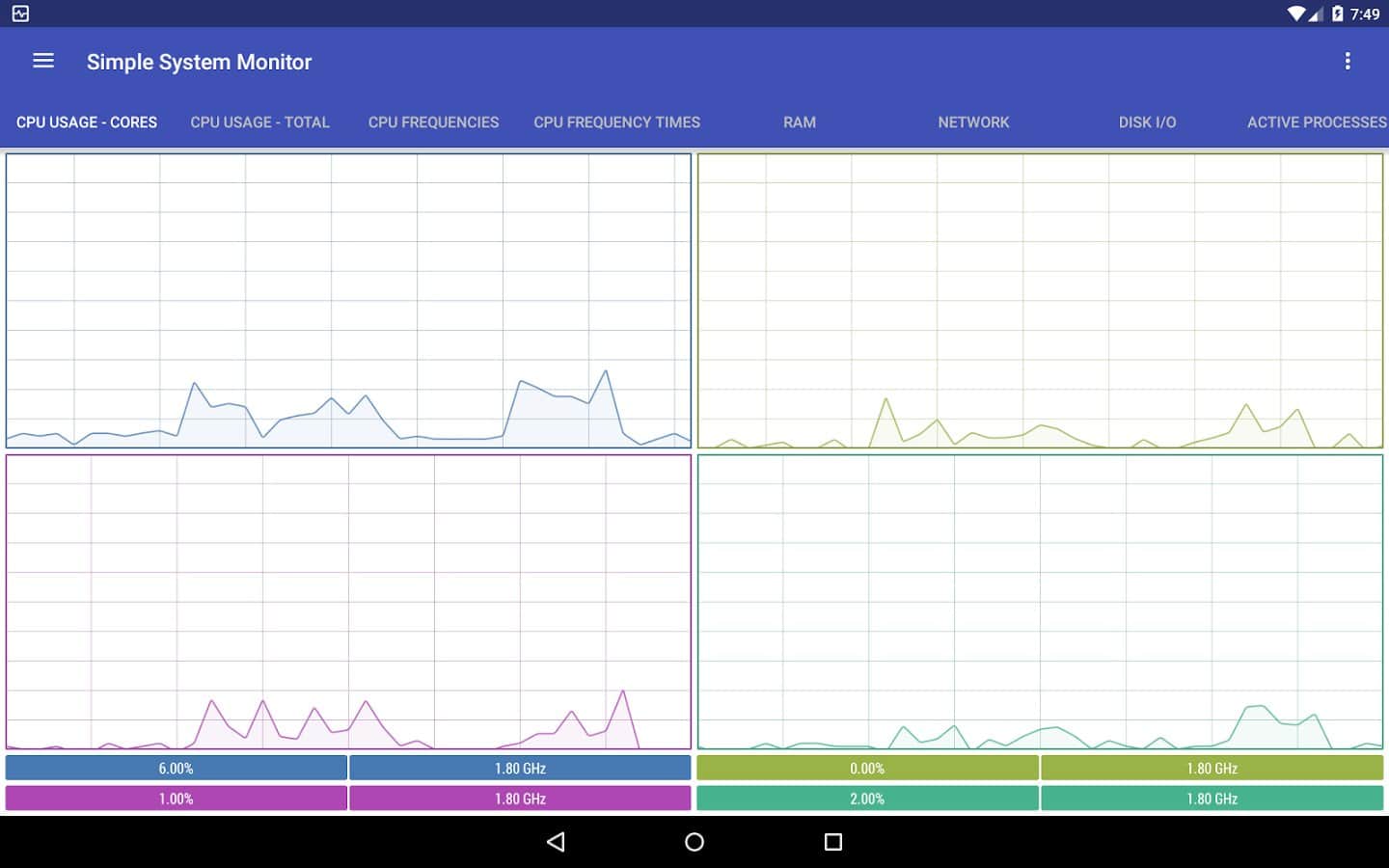 Basit Sistem Monitörü - Akıllı telefonunuzun kaynaklarını gerçek zamanlı olarak izleme. Bu uygulama son derece basit ve kullanışlıdır ve size gerçek zamanlı olarak birçok farklı veri gösterebilir. Belirli uygulamaları başlattığınızda akıllı telefonunuzun ne kadar yüklendiğini mi öğrenmek istiyorsunuz? Bu uygulamayı kurun ve hangi işlemci çekirdeklerinin aktif olduğunu, neye hizmet ettiklerini, sıcaklıklarının ne olduğunu ve daha fazlasını öğrenebilirsiniz. Bu uygulamanın işlevselliği çok geniştir ve cihazları hakkında her şeyi bilmek isteyenleri memnun edecektir.