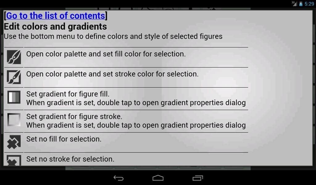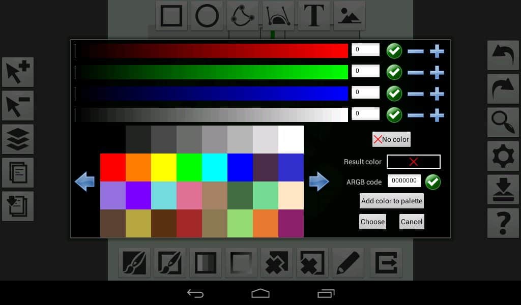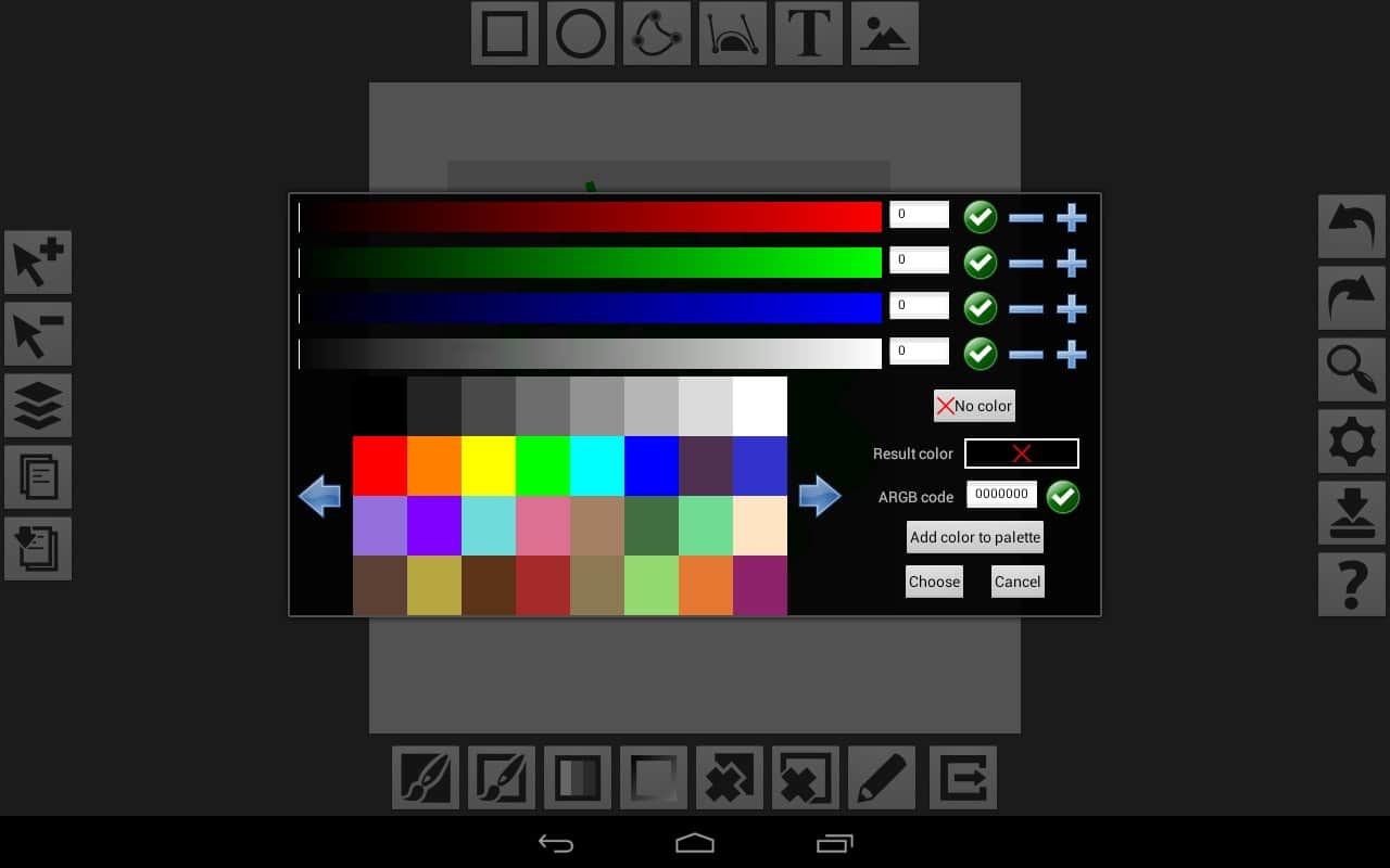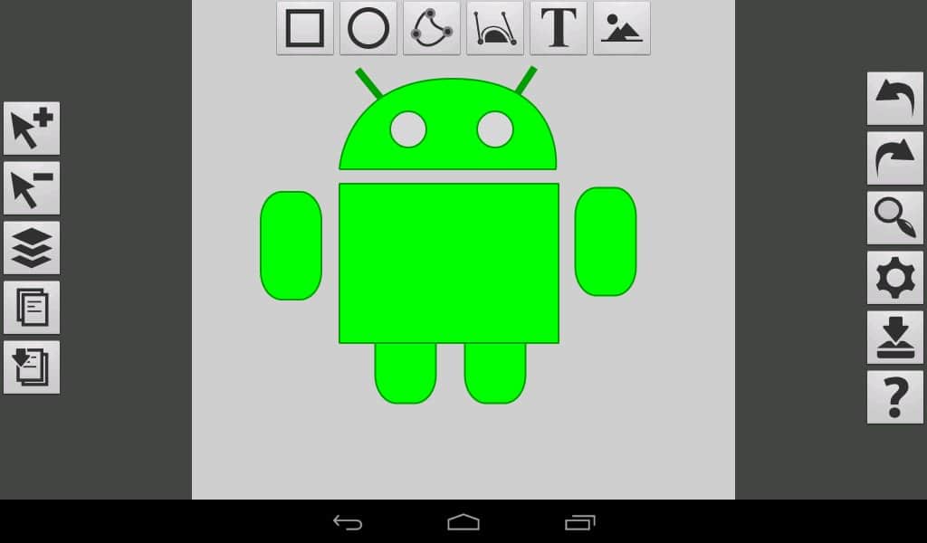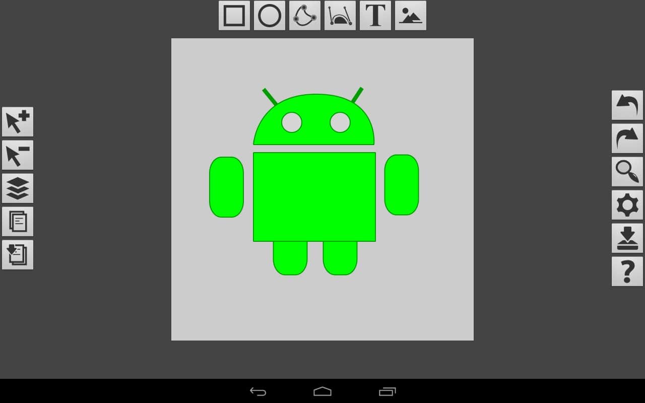 Simplector – vektör editörü, burada istediğiniz her türlü vektör çizimini yapabilirsiniz. Arayüz basit. Düğmeler ve diğer öğeler, sadece tabletlerde değil, aynı zamanda küçük ekranlı telefonlarda da rahatça kullanılacak şekilde tasarlanmıştır. Bu programla cihazınızda oluşturduğunuz görüntüleri, diğer grafik editörlerinde, örneğin Inkscape'de açabilirsiniz.